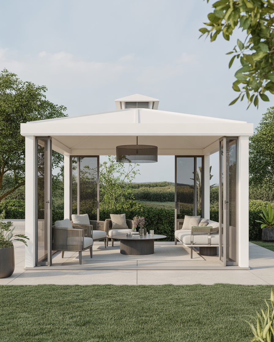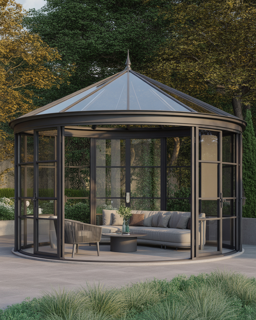 A glass gazebo is the perfect modern outdoor statement piece. It connects indoor and outdoor spaces seamlessly while keeping the design light and elegant. Its clean lines and reflections create a sense of calm and sophistication ideal for minimalists.