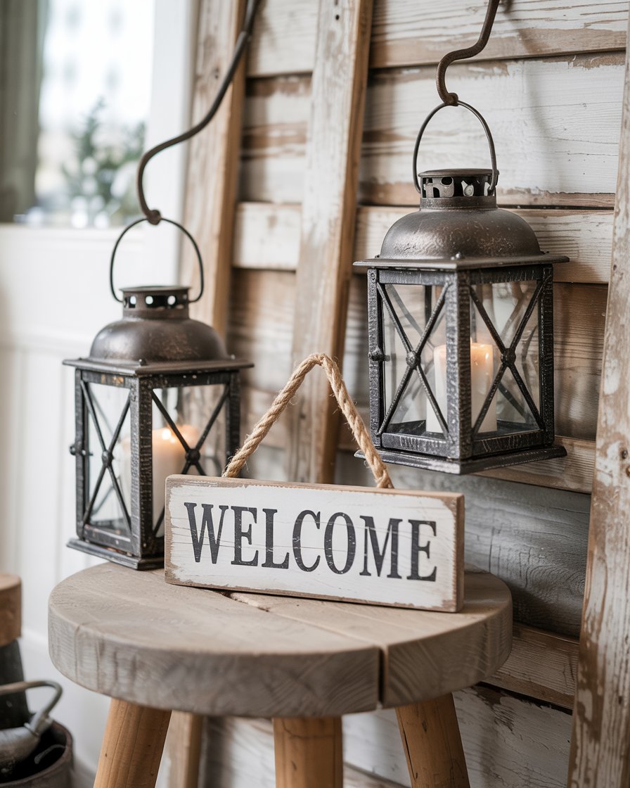 Adding primitive elements gives porches character. Think weathered wood stools, iron hooks with hanging lanterns, or hand-painted rustic signs. Combined with winter porch decorating ideas farmhouse, these touches add depth without overwhelming. Keep the color scheme neutral, blue, or white for a timeless winter look. Primitive styling is making a comeback, according to House Beautiful, especially for outdoor porches.