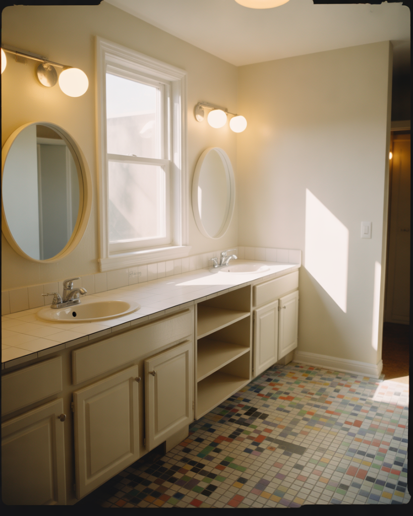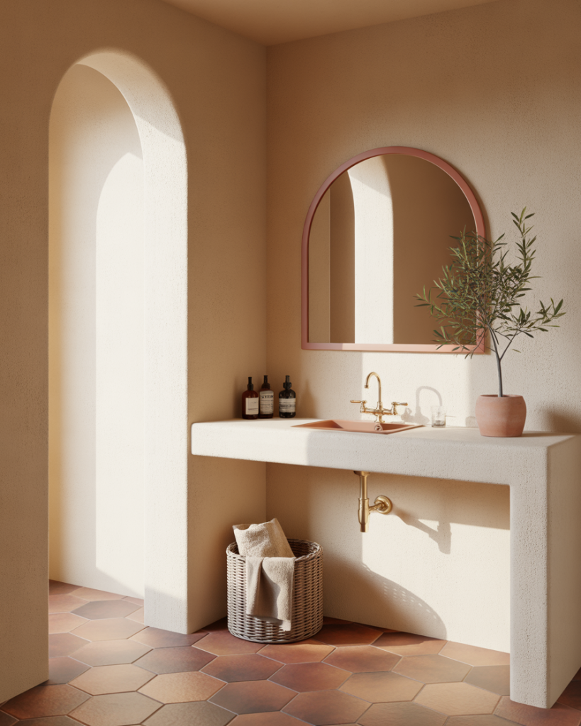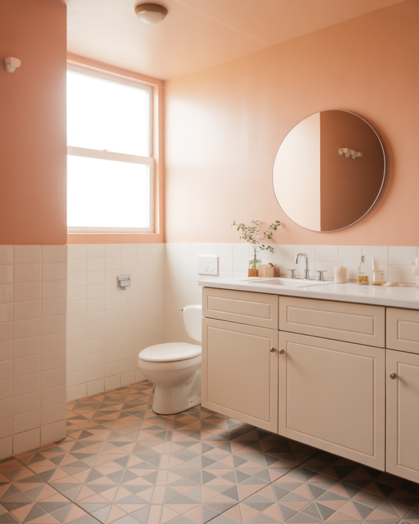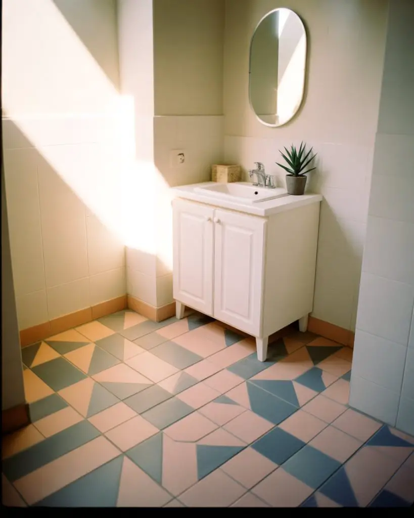 Practical insight: Cement tiles are porous and need to be sealed properly—skip this step and you’ll spend months trying to remove stains. Have a professional seal them at installation, then reseal annually. The payoff is a floor that develops a soft patina over time while standing up to wet towels, toothpaste spills, and the occasional bath toy flood.