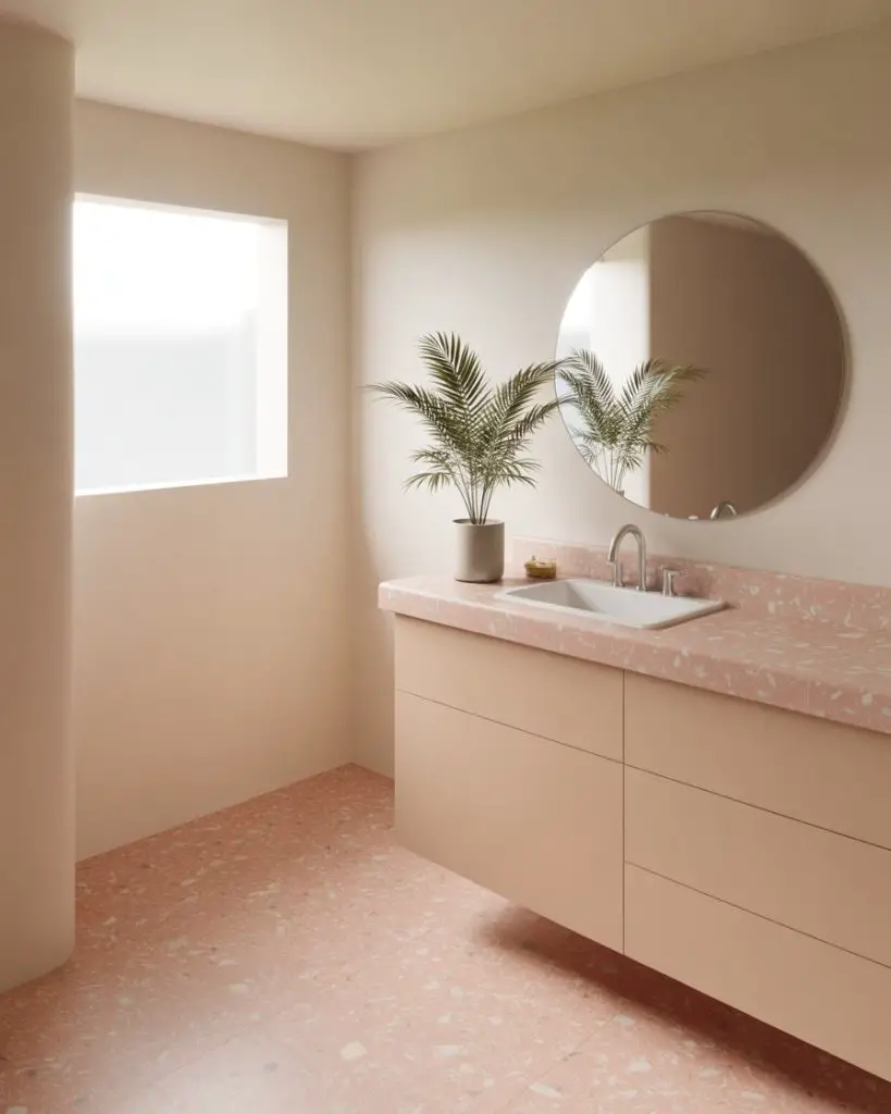 Terrazzo is experiencing a major revival, and guest bathrooms are the perfect place to embrace this fun material. Whether you choose terrazzo floor tile, a vanity top, or even a full shower surround, the speckled pattern adds movement and visual interest while being incredibly forgiving of everyday wear. Modern versions come in colors beyond the traditional pink-and-gray—think soft pastels, bold primaries, or sophisticated monochromatic schemes. Pair with simple fixtures so the terrazzo remains the star, and appreciate that it’s nearly indestructible.