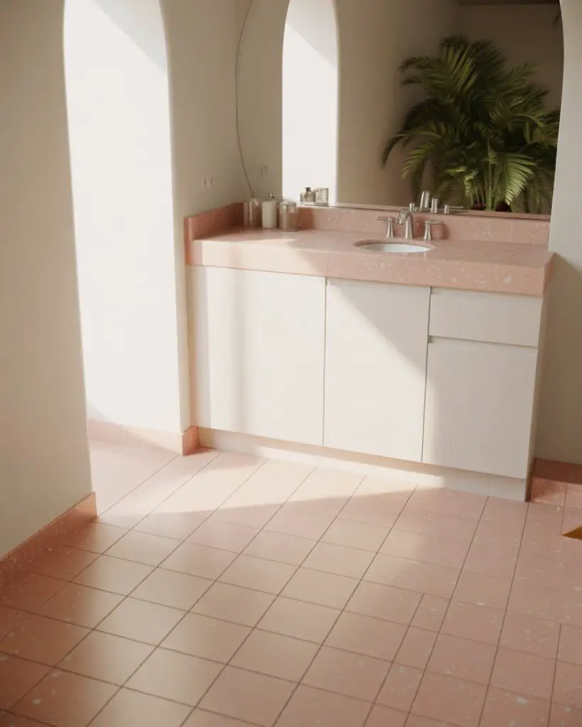 Practical insight: Authentic terrazzo (ground stone set in cement or resin) is pricey at $25–$100 per square foot installed, but terrazzo-look porcelain tiles deliver similar aesthetics for $8–$15 per square foot. The porcelain versions are also easier to install and maintain, with built-in sealing that makes them nearly maintenance-free. Just ensure the pattern scale works for your space—large chips read better in bigger bathrooms, while fine speckles suit smaller rooms.