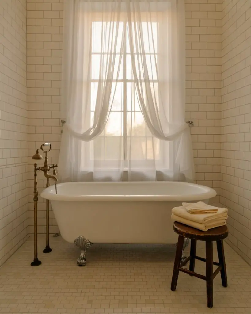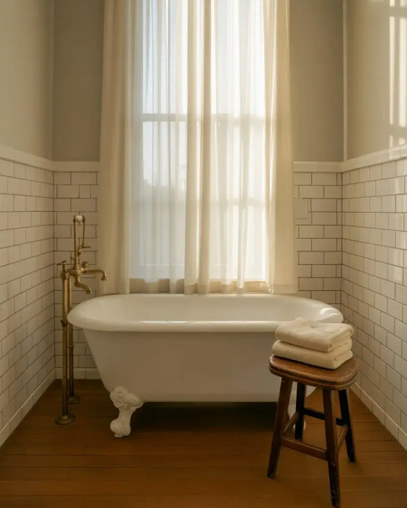 Budget angle: Vintage clawfoot tubs can be found at architectural salvage yards for $200–$600, though refinishing and plumbing installation will add another $800–$1,500. It’s still significantly cheaper than buying new, and you get authentic character that reproductions can’t quite match. Just make sure your floor joists can handle the weight when filled—these beauties can tip the scales at 500 pounds or more.