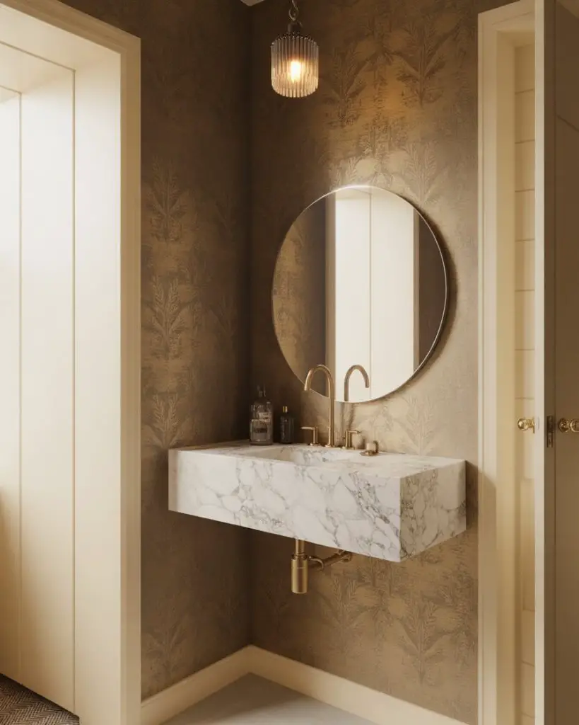 Where it works best: This aesthetic shines in homes with existing art collections or in urban settings where design-forward choices feel natural. It’s also ideal for guest baths adjacent to home offices or living spaces where the visual connection to the rest of the home matters. Avoid this in ultra-casual or kid-centric homes where the refined vibe might feel disconnected from the overall aesthetic.