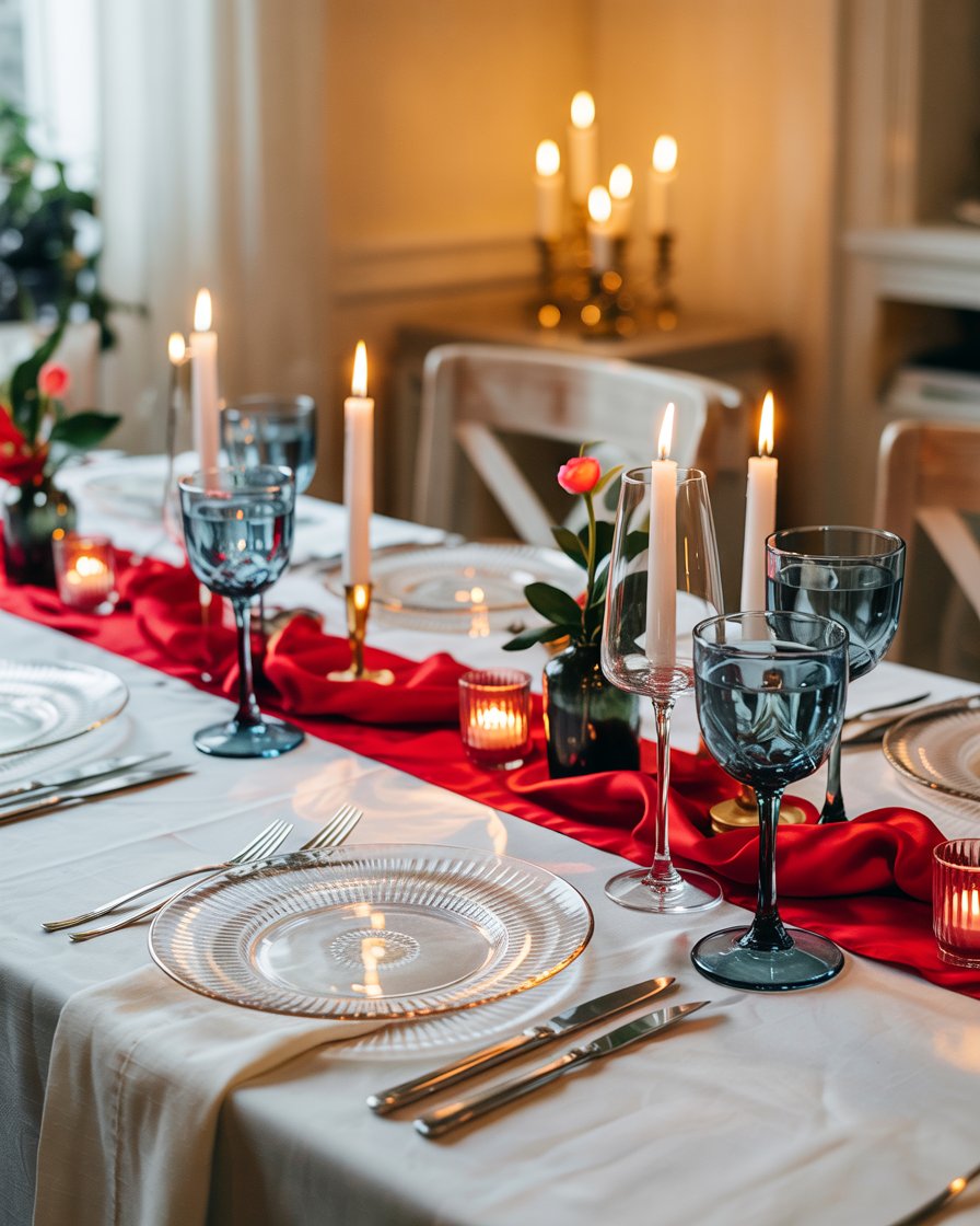 Turn plain taper candles into shimmering showpieces by dipping them halfway in red or silver glitter. Place them in slim holders along the table for a modern yet playful look. It’s one of those easy diy touches that elevates the mood without much cost.
