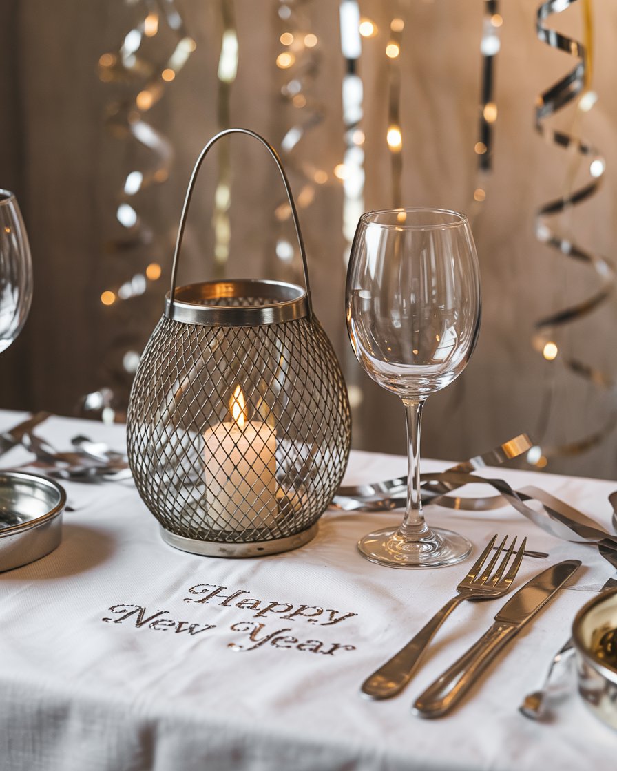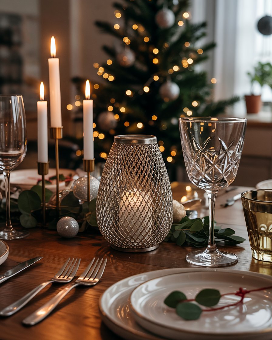 Pair mesh lanterns with LED candles to give a glowing, futuristic centerpiece. The combination of silver and warm light creates a bold 2025 look. It’s especially striking for those who prefer modern minimalism to cluttered decorations.