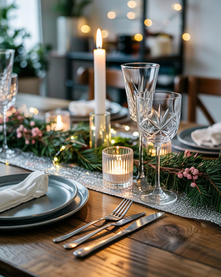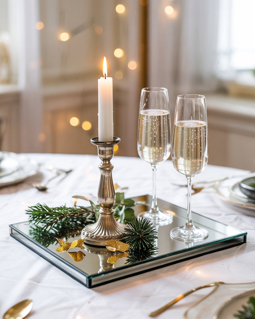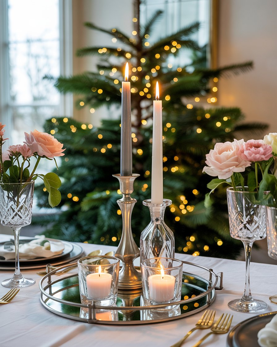 When it comes down to it, sometimes simple is best. A single mirrored tray centered with silver candlesticks keeps things streamlined-yet-festive. It’s wonderful for those really intimate dinners where conversations are the focus. Interior stylist Emily Henderson often repeats that restraint is sometimes more powerful than excess, especially when it is tied to a timeless color like silver.
