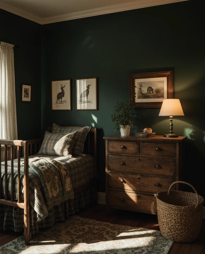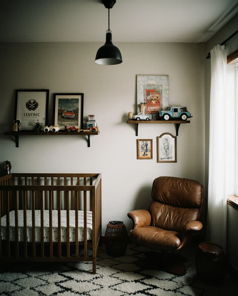 This nursery draws inspiration from classic American outdoor heritage, featuring vintage hunting prints, plaid textiles, and weathered wood accents. Think framed duck silhouettes, antique fishing rods mounted as wall art, and a color palette of forest green, burnt orange, and cream. It’s a sophisticated nod to hunting traditions without feeling overly literal, making it perfect for families who love the outdoors or have a cabin connection. The look works beautifully in suburban homes across the Midwest and New England, where heritage sporting culture runs deep.