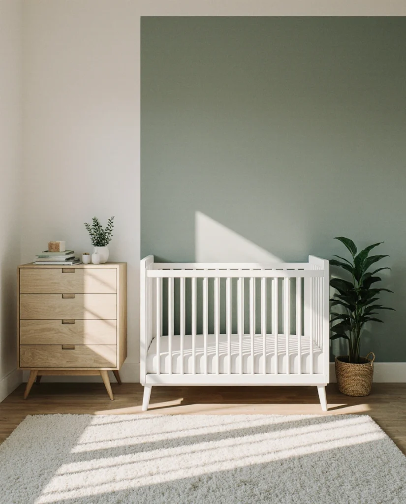 A sage green accent wall has become one of the most pinned nursery features of 2026, offering a calming, nature-inspired backdrop that pairs beautifully with wood tones and cream textiles. This single design choice transforms the room without overwhelming it, making it ideal for minimalist or Scandinavian-leaning parents. Sage green works across climates and home styles, from modern condos to farmhouse settings, and it’s gender-neutral, timeless, and incredibly versatile. The color promotes rest and feels grounded—a perfect foundation for a baby’s space.