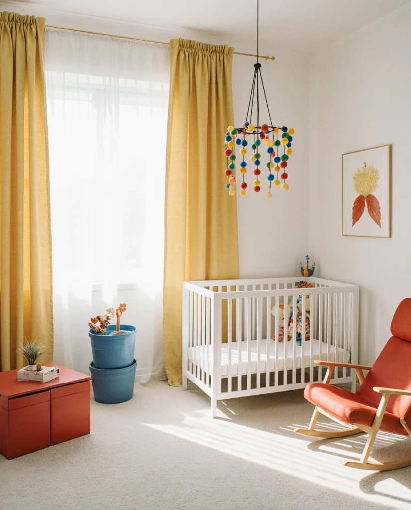 Experts suggest that primary colors are particularly effective for visual stimulation during waking hours but recommend pairing them with dimmable lighting and blackout shades for sleep times. Budget tip: use bright colors in easily changeable elements like bins, bedding, and art so you can tone down the palette as your child grows. Real homeowner behavior shows that parents often start bold and gradually shift to more muted tones by toddlerhood, so plan for flexibility.