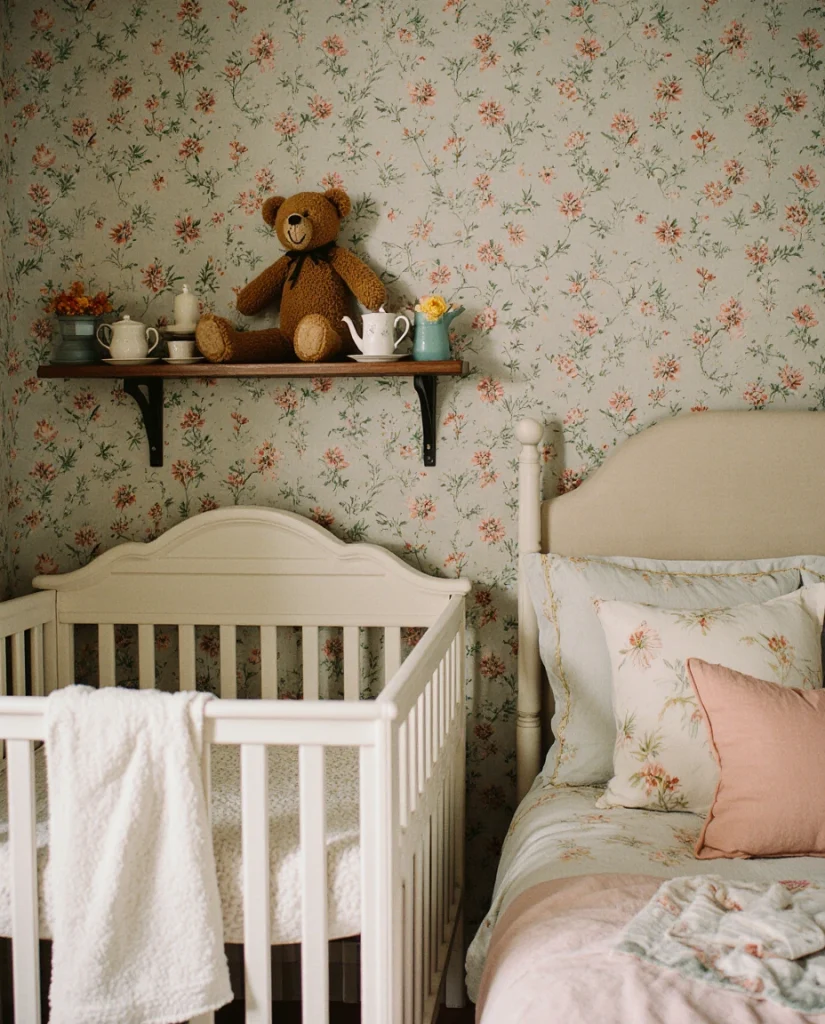 Room ideas A vintage nursery blends antique furniture, sepia-toned prints, and heirloom textiles to create a space that feels collected over time rather than purchased all at once. This approach values craftsmanship, history, and sustainability—buying quality pieces that can be passed down or repurposed. It’s ideal for families who frequent estate sales, value slow living, or simply appreciate the warmth and character that vintage items bring. The palette typically centers on creams, soft browns, and muted pastels, creating a gentle, nostalgic atmosphere.