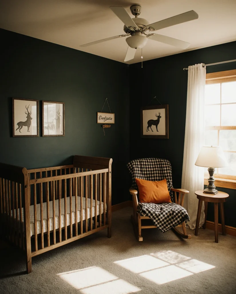 A room-ideas-hunting nursery inspired by classic American lodges features rich plaids, leather accents, and wildlife imagery in a palette of deep greens, browns, and oranges. This theme celebrates outdoor heritage and rustic elegance, making it ideal for families with ties to hunting traditions or those who simply love cabin aesthetics. It’s particularly resonant in the Mountain West, Midwest, and South, where outdoor recreation shapes culture and identity. When done thoughtfully, it’s warm, inviting, and deeply rooted in American sporting tradition.