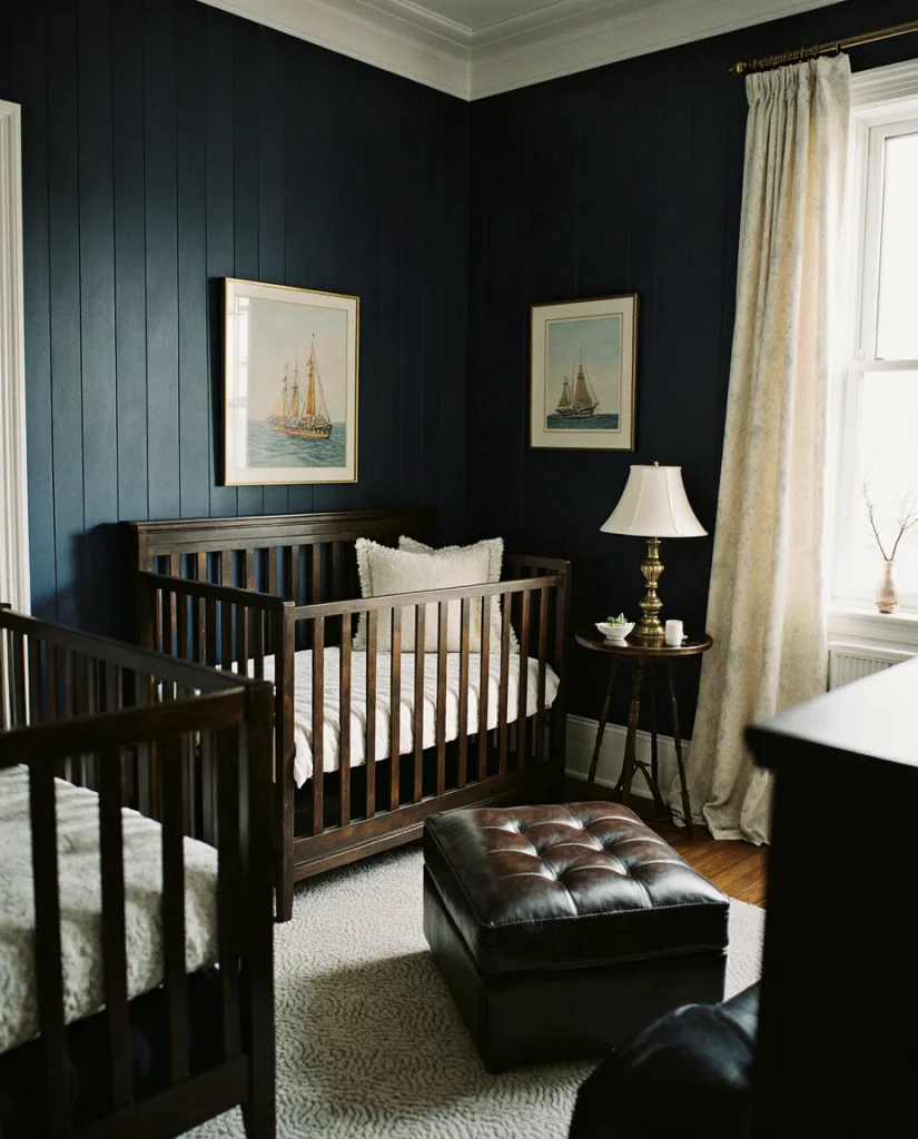 For a polished East Coast aesthetic, consider room ideas in Ralph Lauren style with crisp navy stripes, equestrian accents, and rich wood furniture. This look channels timeless American prep—think monogrammed linens, vintage sailboat art, and a clubby color palette of navy, cream, and hunter green. It’s ideal for families in the Northeast or those who appreciate heritage brands and traditional design. The result is a nursery that feels curated, confident, and undeniably classic without veering into stuffy territory.