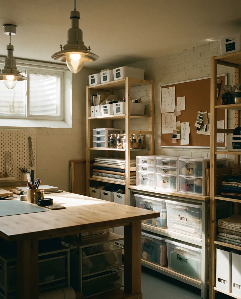 A craft studio works beautifully in a basement that needs affordable upgrades and purposeful ideas. By optimizing shelving, tables, and lighting, you get a workspace that supports creativity without demanding a top-tier remodel. Pegboards and labeled drawers keep everything in easy reach.