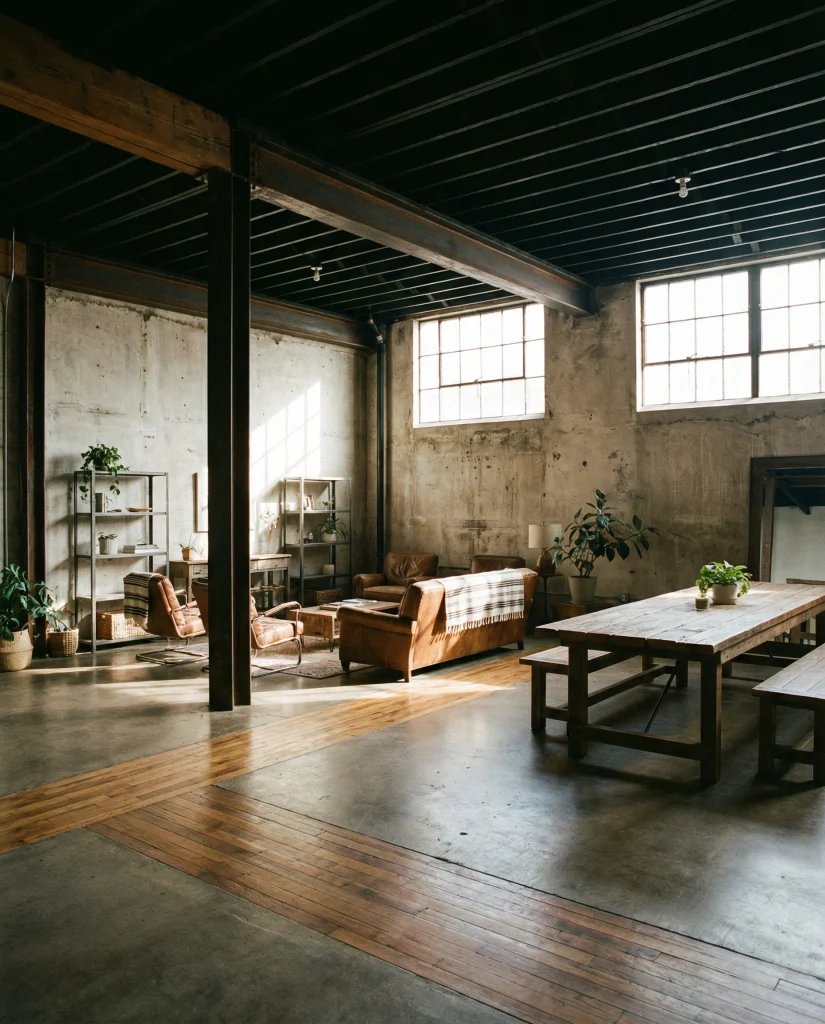 Where it works best: basements with mechanicals that are hard to hide or areas with high enough clearance to embrace a bold industrial look. The style thrives in open layouts where the ceiling treatment becomes a design centerpiece.