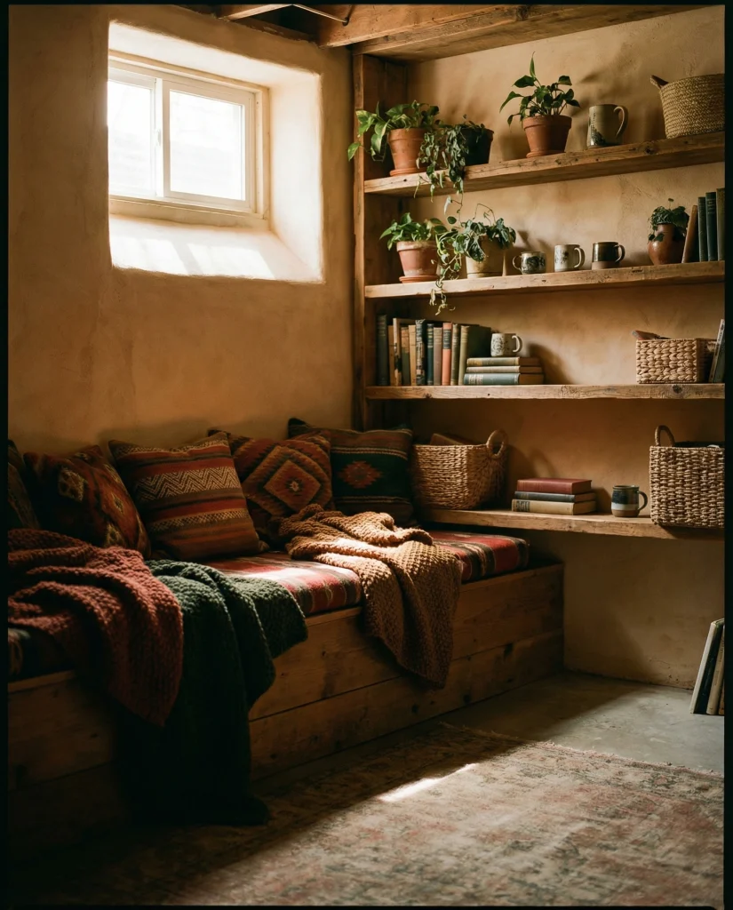 Carving out a small nook with DIY touches and easy finishes can transform a neglected corner. A built-in bench, floating shelves, and warm paint colors create a restful spot for reading or morning coffee. Because the scale is small, the upgrades stay affordable and fun to tackle.