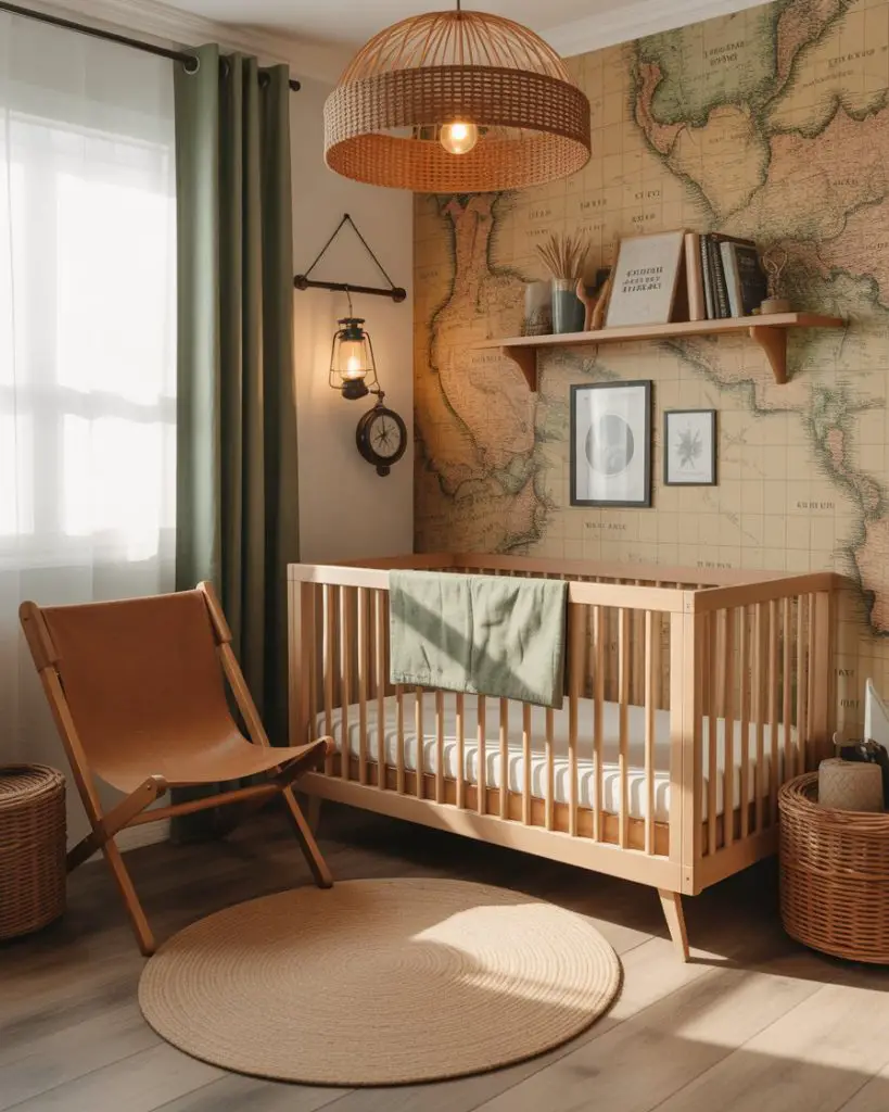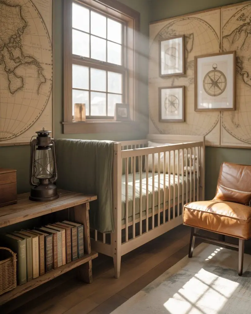 Building on traditional hunting themes, modern ideas hunting nurseries incorporate adventure elements like maps, compasses, and vintage outdoor gear. This approach feels less literal than classic hunting lodges, instead celebrating exploration and outdoor discovery. Warm browns, forest greens, and touches of leather create a sophisticated base that grows with your child. Parents who enjoy camping, hiking, or fishing find this theme particularly meaningful.