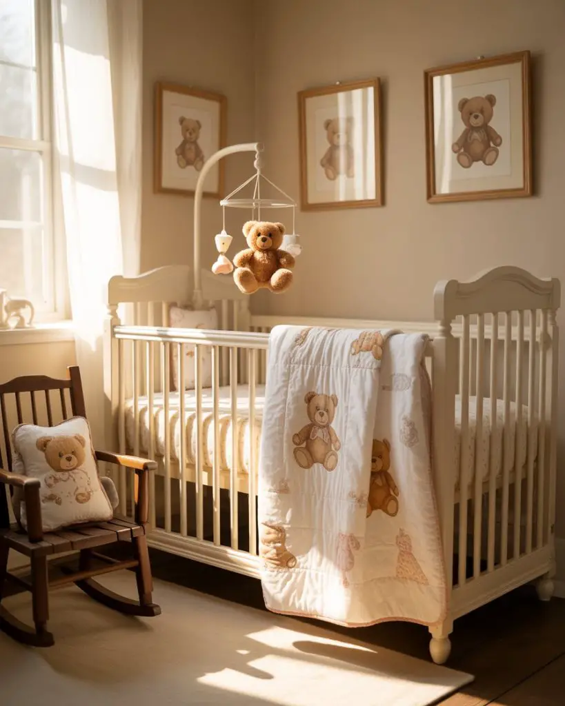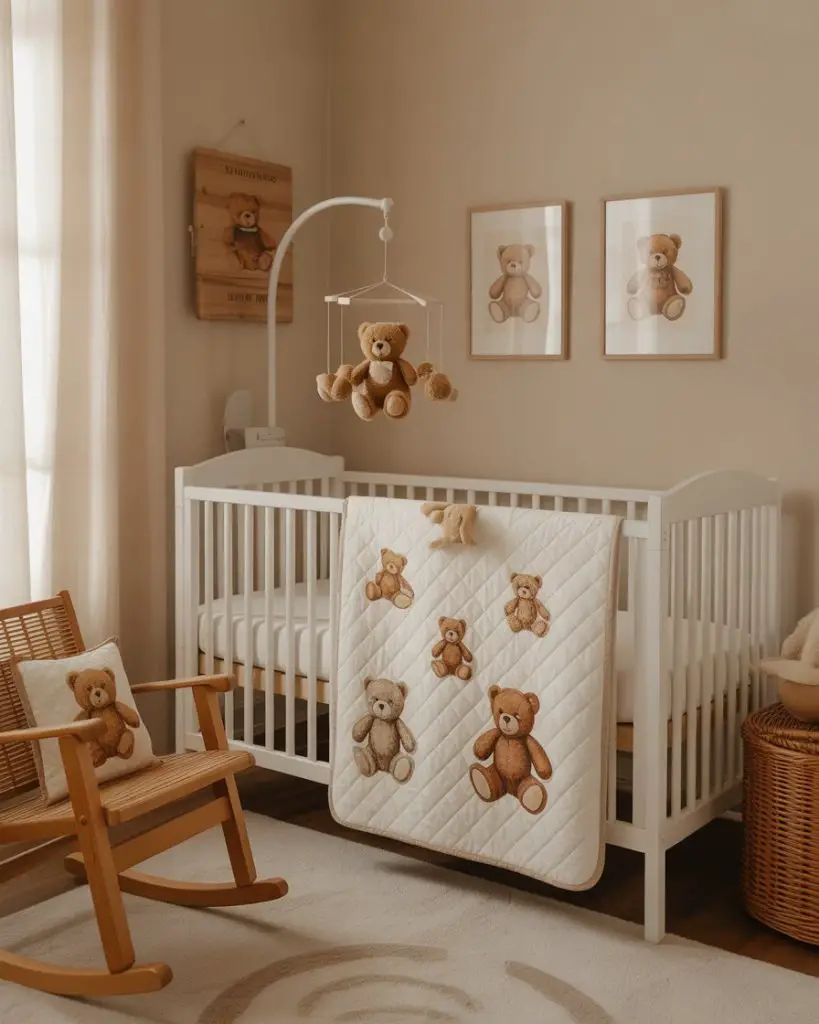 Nothing says nursery nostalgia quite like a teddy bear theme that celebrates the timeless companion every child treasures. Soft browns, creams, and gentle plaids create a warm backdrop, while vintage-inspired teddy bear baby prints and plush collections add personality. This theme resonates especially in the Northeast and Midwest, where traditional nursery aesthetics remain beloved. The simplicity allows parents to focus on quality pieces that can be passed down through generations.