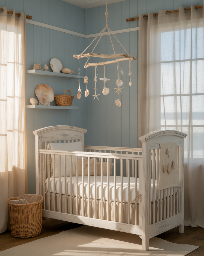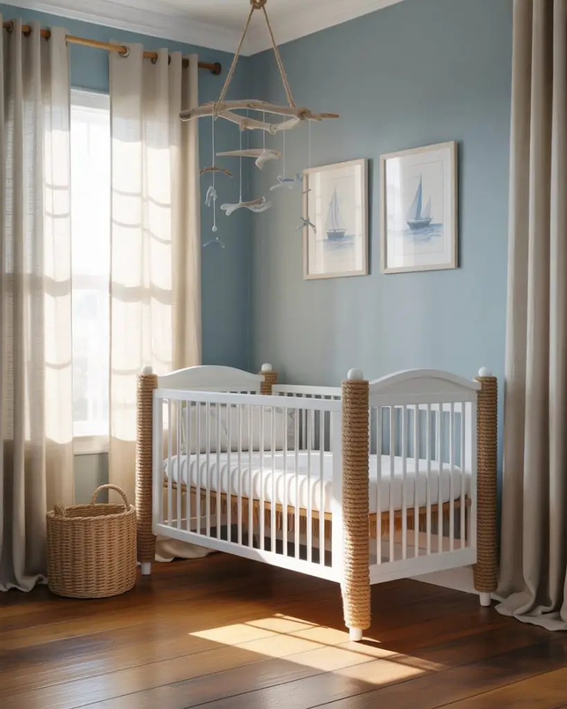 A practical insight for beachy nurseries: Embrace natural, washable fabrics like linen and cotton that improve with age and washing, much like beach house textiles. This practical approach aligns perfectly with the coastal aesthetic while standing up to the realities of spit-up, diaper changes, and everyday baby life—form and function working in harmony.