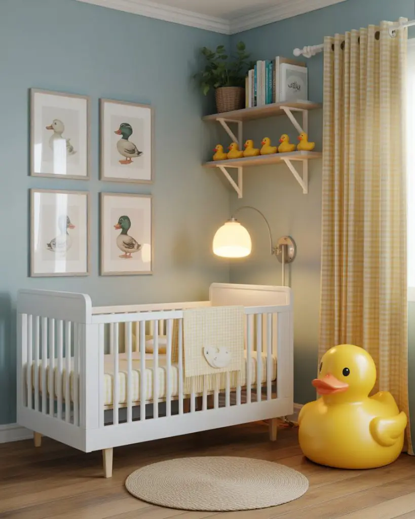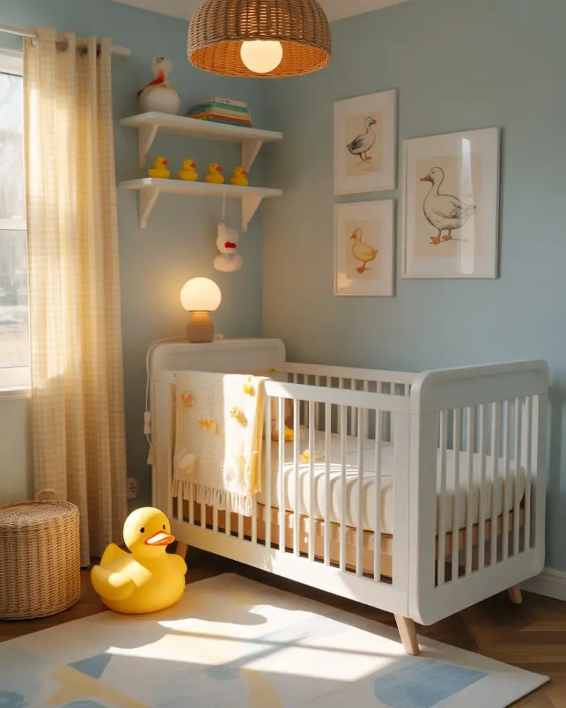 Real homeowner behavior shows that parents often start collecting vintage ceramic or wooden ducks during pregnancy, displaying them on shelves as both decor and future playthings. The duck theme also pairs beautifully with nautical or farmhouse elements, making it incredibly versatile for various home styles across America.