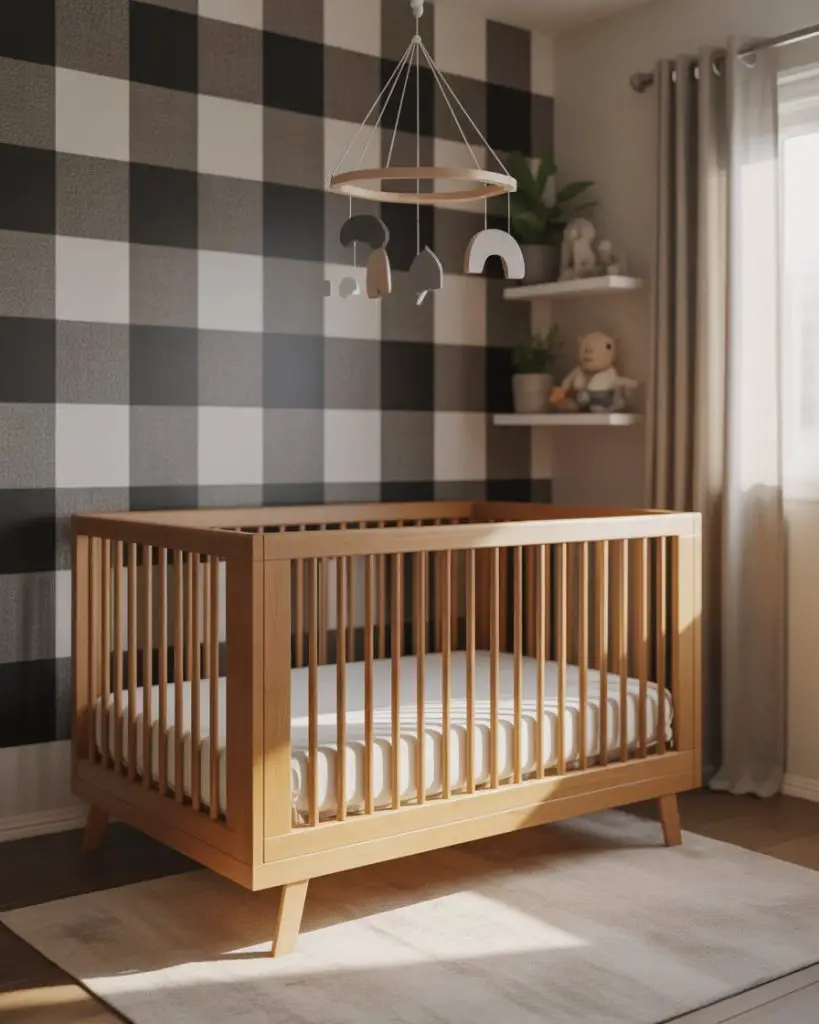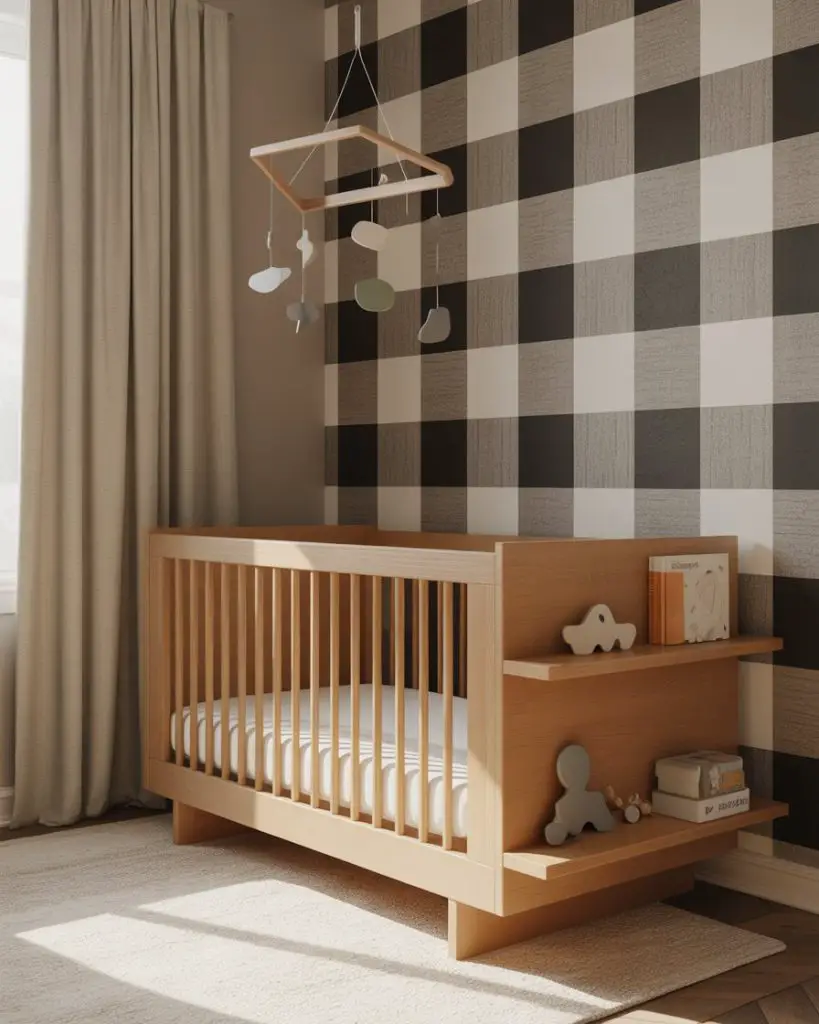 The checkered pattern makes a bold statement in 2026 nurseries, offering graphic interest that feels both modern and classic. Black and white gingham or buffalo check can anchor a room, while softer versions in navy and cream or sage and white feel gentler. This pattern works beautifully as an accent wall, curtain fabric, or bedding detail. Design-forward parents appreciate how checkered elements add visual structure without requiring complex decor decisions.