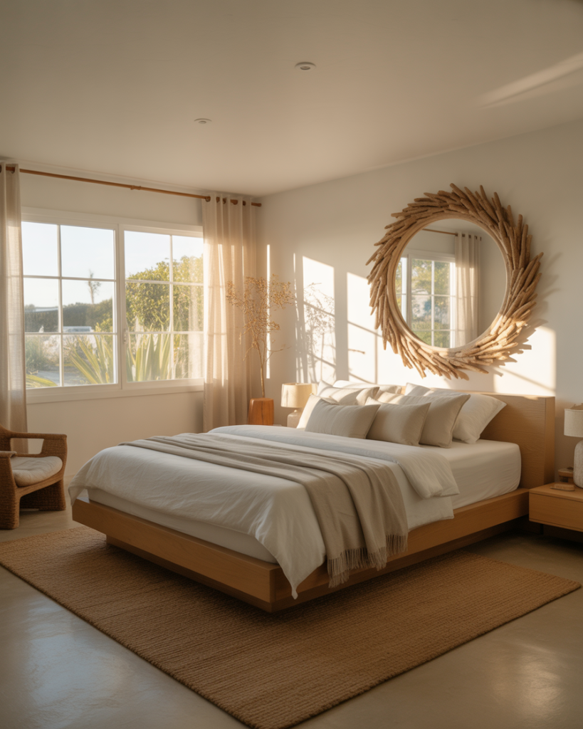 This approach takes cues from Modern architecture and virtual design trends like Bloxburg, favoring crisp white walls, streamlined furniture, and floor-to-ceiling windows that frame ocean or garden views. The Master suite becomes a sanctuary where minimalism meets coastal ease, with a platform bed in light oak, linen bedding in soft ivory, and one statement piece—a driftwood mirror or sculptural pendant light. The result is a space that feels open, airy, and effortlessly sophisticated, where every element serves a purpose and nothing feels cluttered.