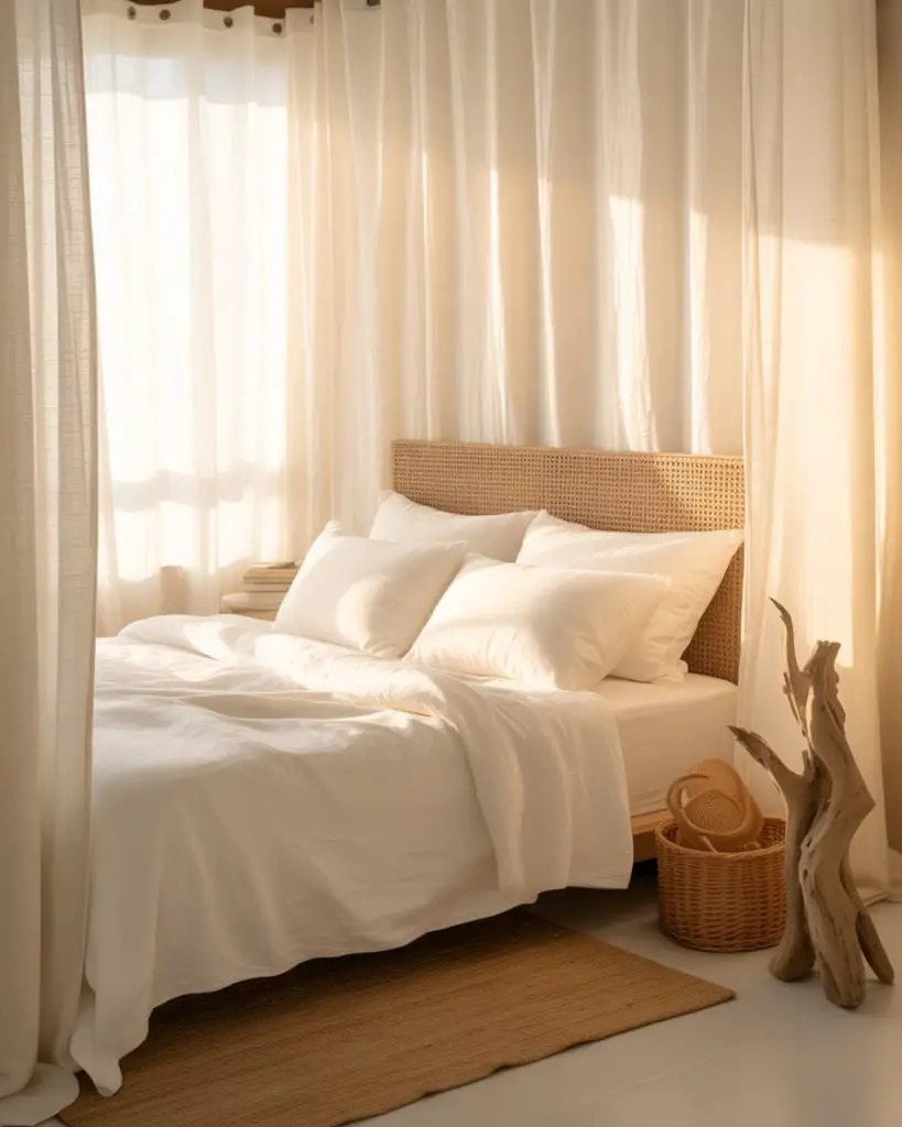 21. Cozy Neutral Coastal Bedroom with Layered Textiles