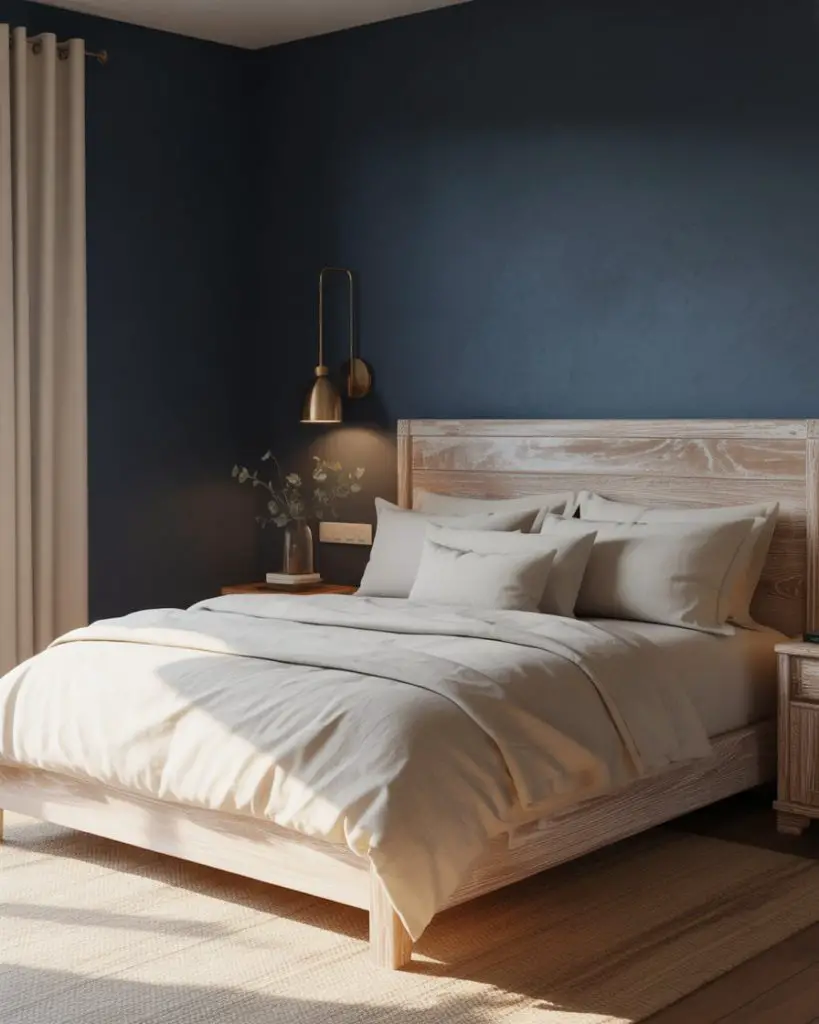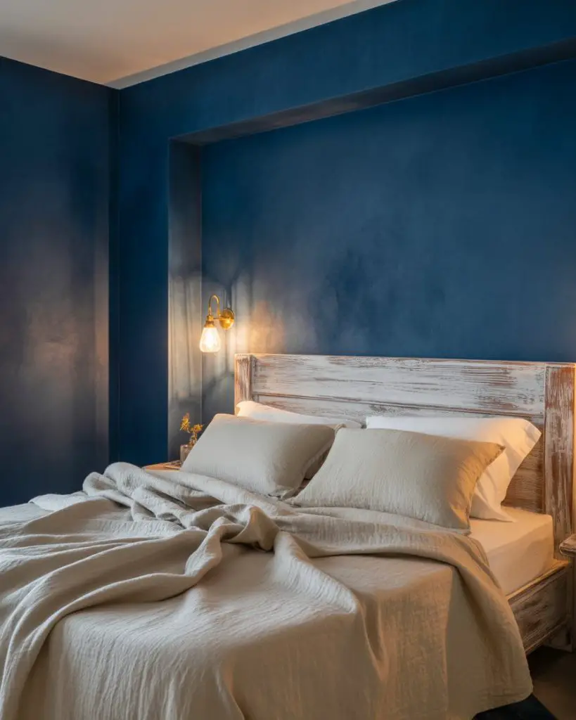 14. Moody Coastal Bedroom with Deep Blue Walls