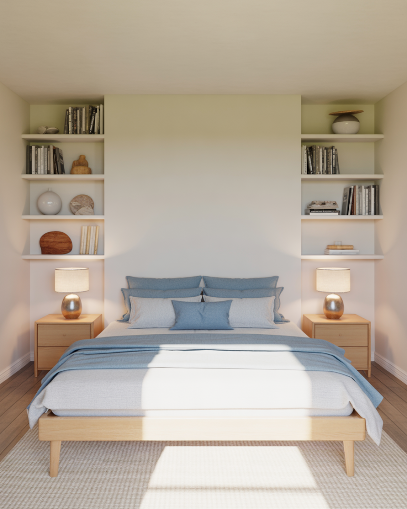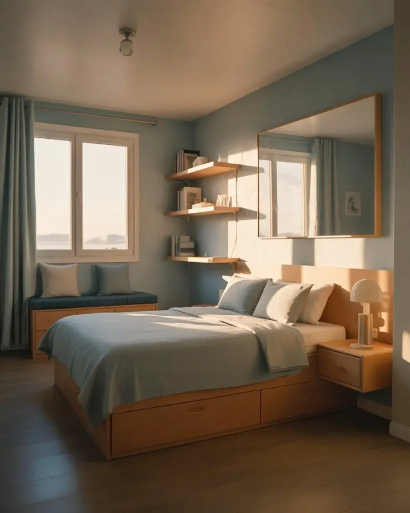 Real homeowner behavior in urban areas like New York, Chicago, and Seattle shows that people are willing to invest in custom or semi-custom furniture to maximize every inch of space. Companies like IKEA, The Container Store, and even Etsy offer affordable storage solutions designed for small bedrooms. The key is vertical thinking—use wall space for storage and décor, keeping the floor as clear as possible to maintain a sense of flow and breathing room.