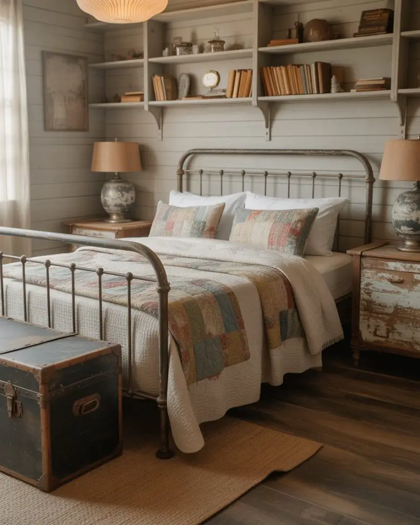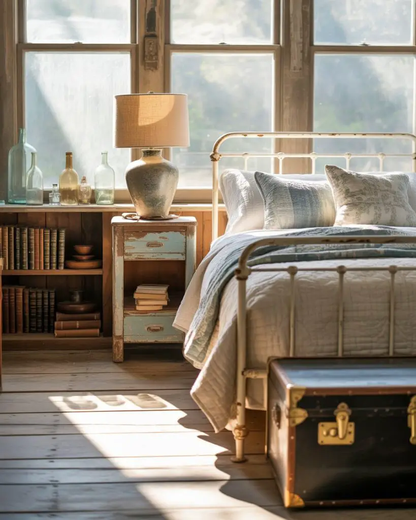 This aesthetic thrives in historic homes, especially along the Atlantic coast from Maine to Georgia, where architectural details like wide-plank floors and exposed beams complement the vintage vibe. A practical insight: mixing old and new ensures the room feels curated rather than dated—pair a vintage dresser with modern bedding, or balance rustic wood with sleek brass hardware. It’s also an eco-friendly approach, giving new life to secondhand furniture and reducing waste.