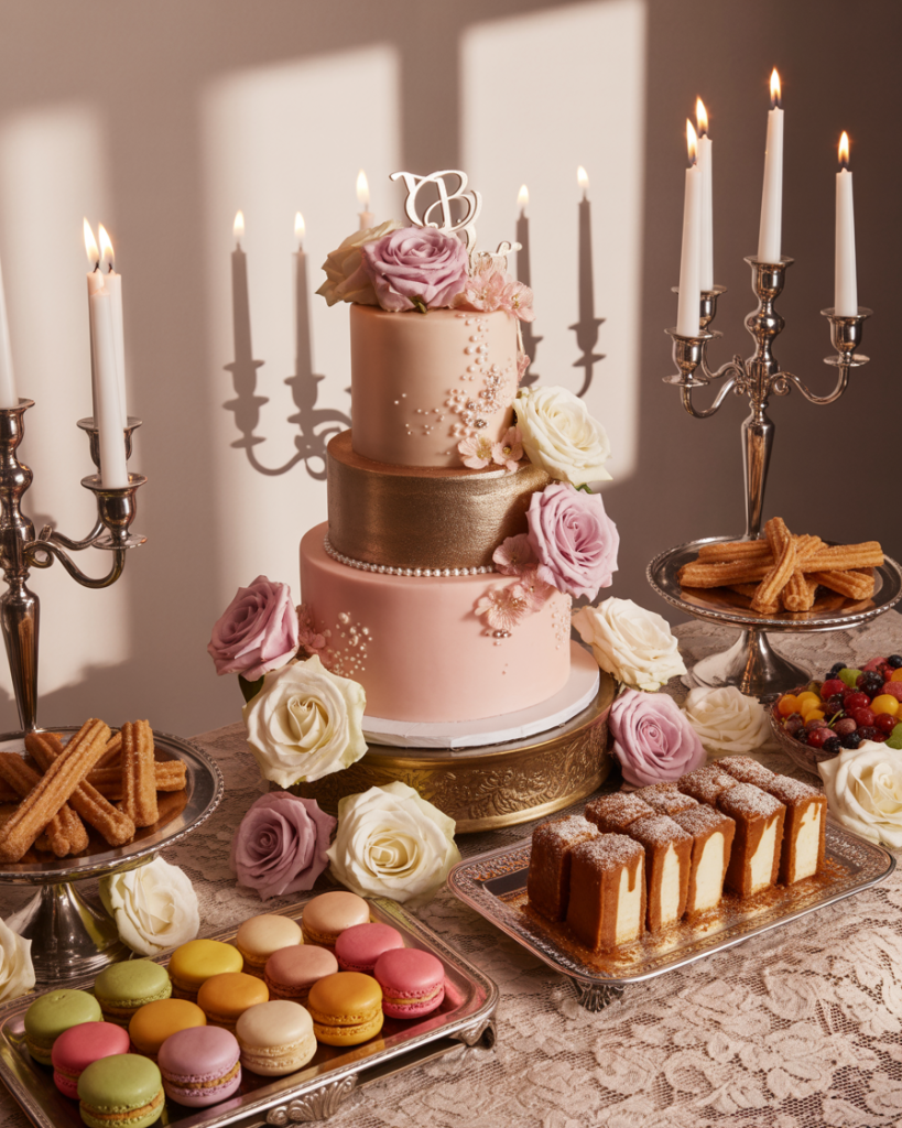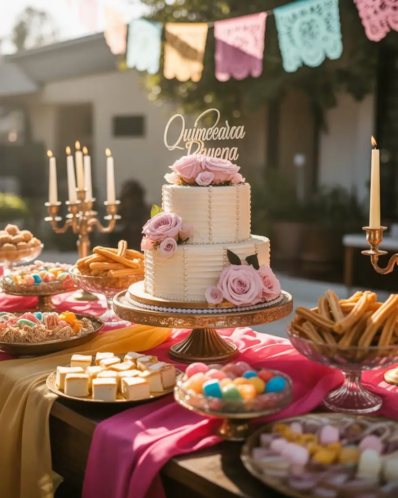 A quince dessert table represents cultural heritage and family tradition, requiring thoughtful planning that honors both the ceremony’s significance and the quinceañera’s personal style. Beyond the grand cake, include traditional Mexican sweets like cajeta cookies, flan cups, churros with chocolate sauce, and colorful paletas arranged artfully. The table should reflect the party’s color theme while incorporating symbolic elements—perhaps fifteen small desserts representing each year of her life, or treats in her favorite flavors that show this celebration is deeply personal, not just formulaic tradition.