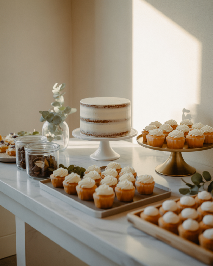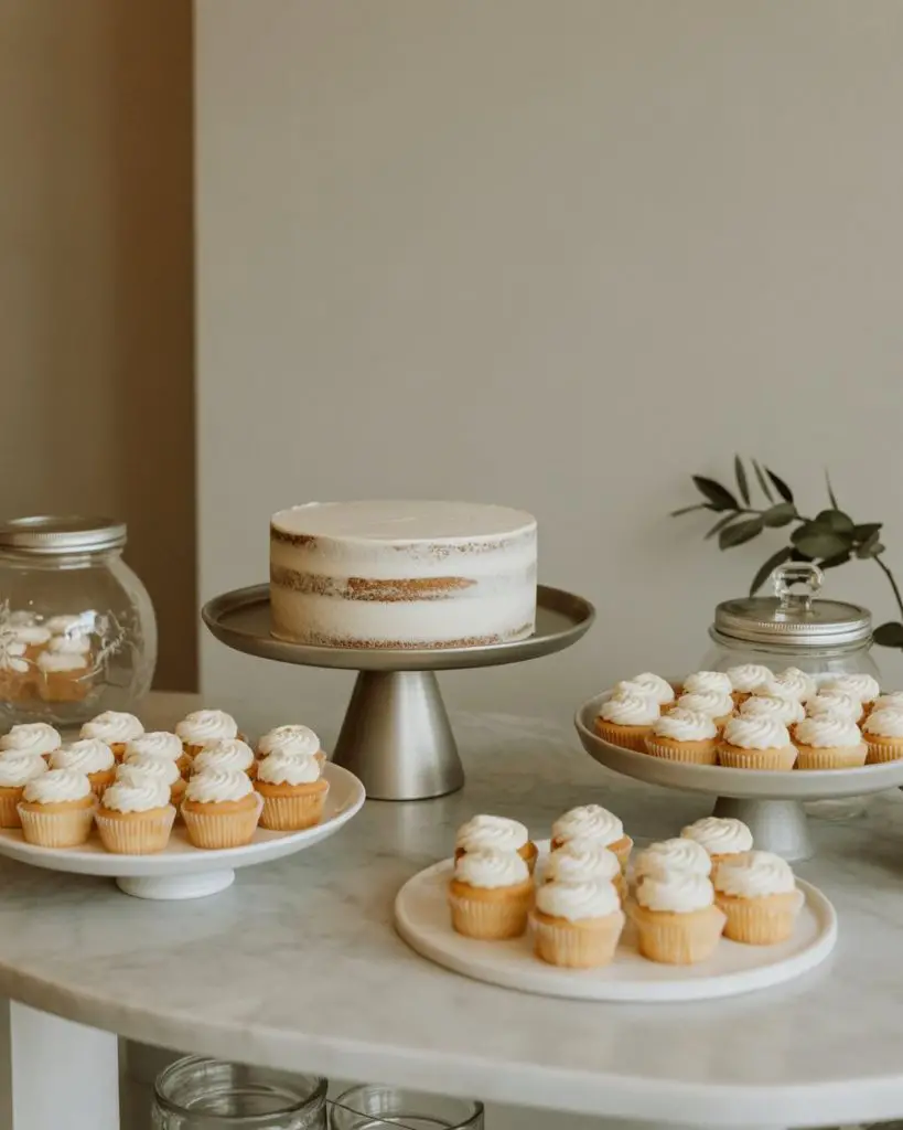 Simple dessert tables prove that less truly can be more, especially for hosts who prefer clean lines and uncluttered aesthetics. Focus on three to five dessert varieties presented on matching white or neutral-toned platters, with strategic negative space that lets each element breathe. A beautiful pound cake on a marble stand, a row of identical cupcakes with minimal frosting, and a glass jar of homemade cookies can create more visual impact than a table crowded with dozens of mismatched sweets. This approach works particularly well for easy entertaining when you want elegance without extensive preparation time.