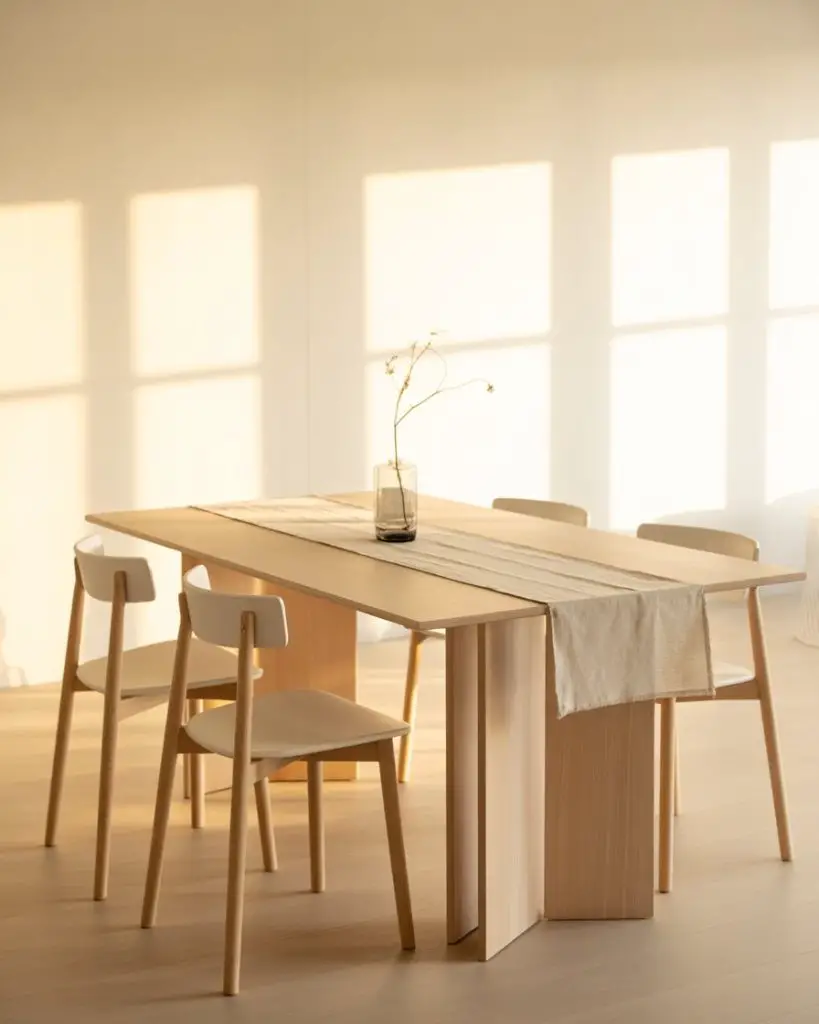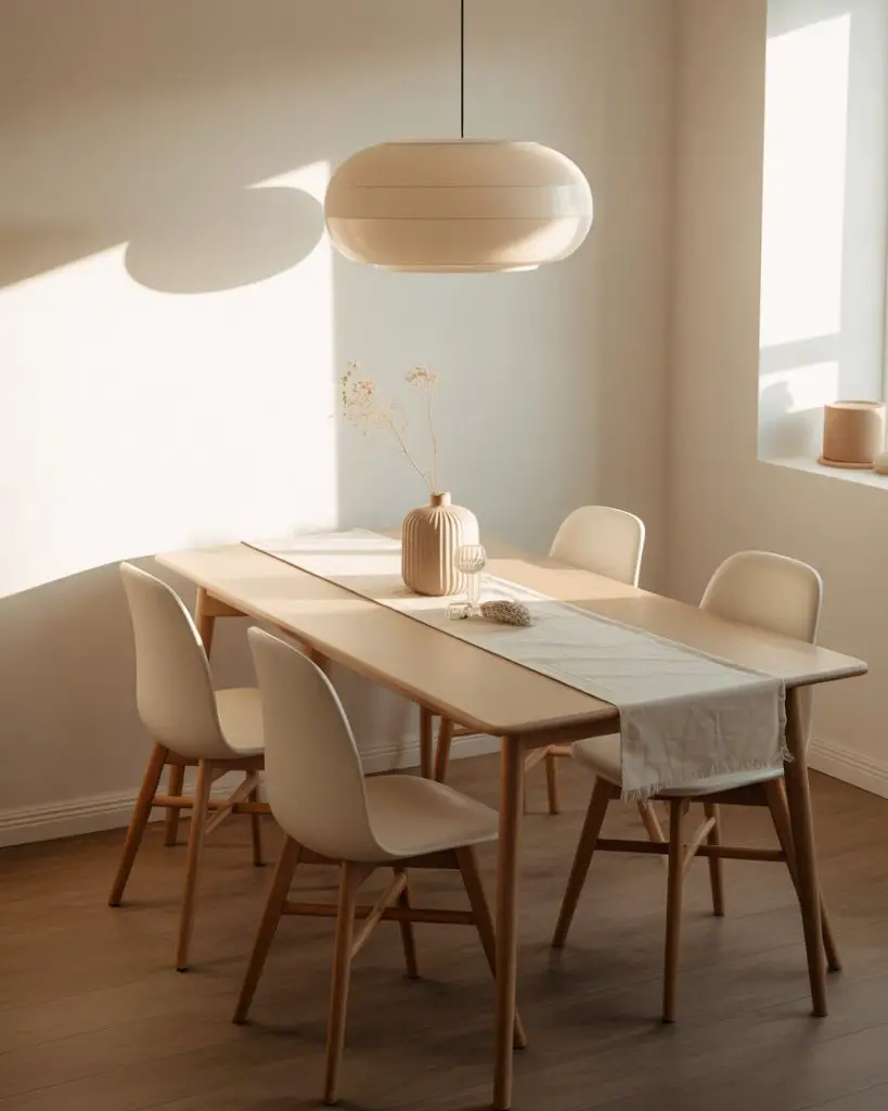 Scandinavian design is synonymous with simple, functional beauty. Start with a light wood dining table—ash, birch, or pine—and pair it with modern white or light gray chairs. Keep accessories minimal: a single stem vase, a linen table runner, perhaps a small potted plant. The focus is on natural materials, clean lines, and an airy, uncluttered feel that makes even small space dining areas feel open and breathable.
