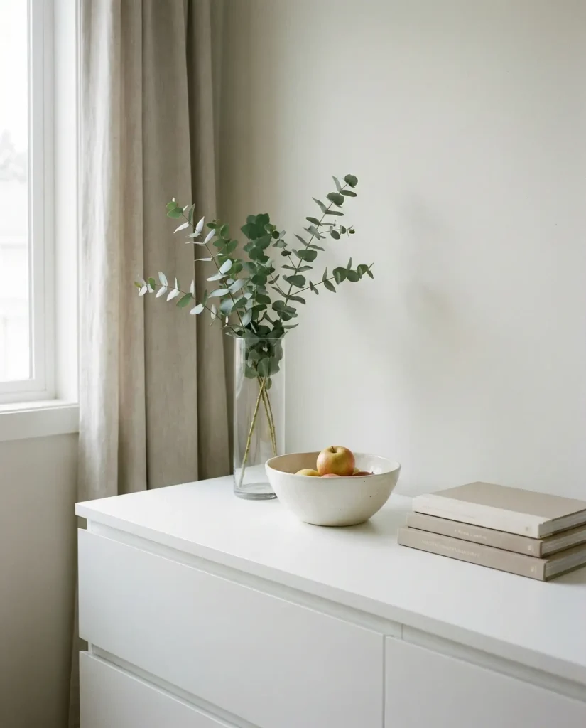 Varying object heights—a tall vase paired with a short stack of books, or a lamp next to a low bowl—creates visual interest and keeps your dresser from feeling flat or one-dimensional, a designer trick that instantly upgrades any vignette. This principle, often called “the rule of three heights,” guides the eye around the composition and makes even simple arrangements feel dynamic. Aim for one tall element, one medium, and one low, and you’ll land on a balanced look almost every time.