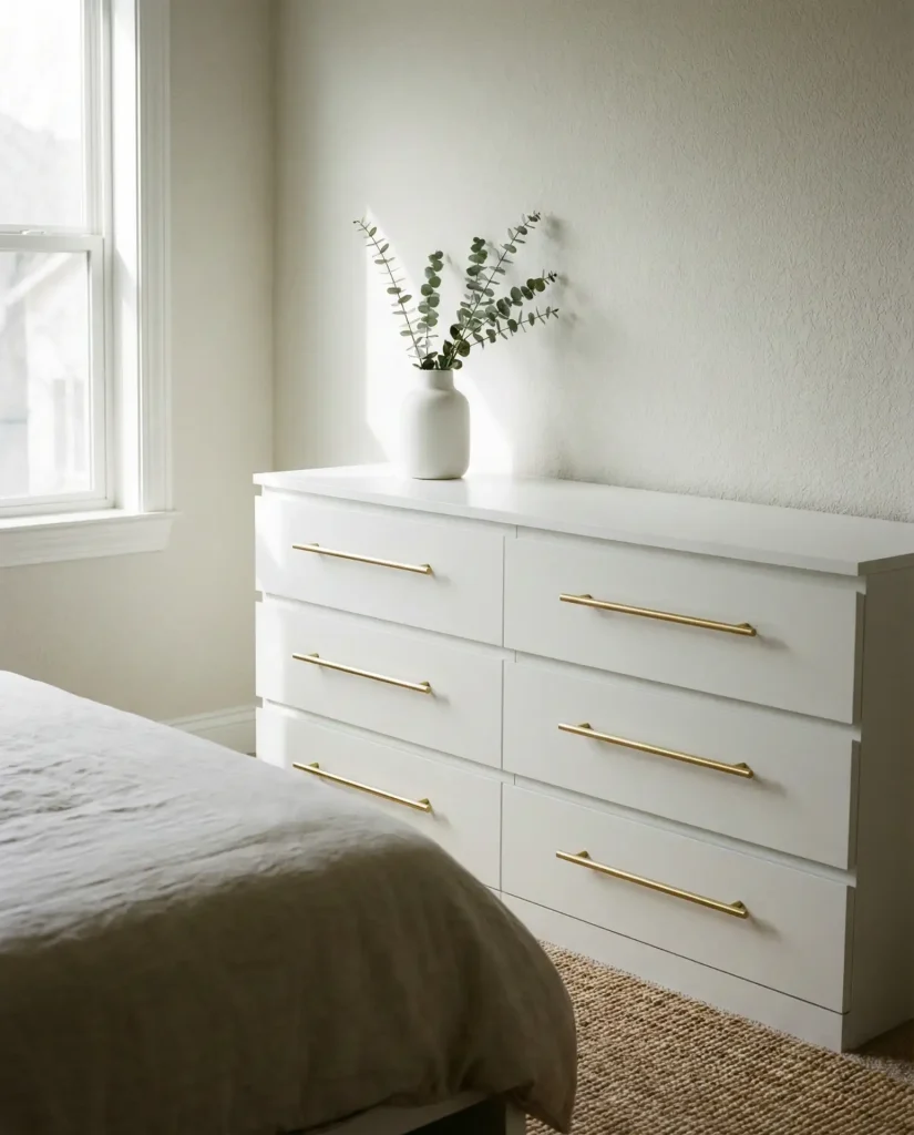 Swapping out the standard knobs on an IKEA MALM dresser for brass pulls, leather straps, or ceramic handles instantly elevates the piece from budget basic to custom showpiece, a transformation beloved on Pinterest for its simplicity and dramatic payoff. This hack costs under thirty dollars and takes less than an hour, yet it completely changes the dresser’s character. Choose hardware that reflects your style—mid-century brass, farmhouse black iron, or minimalist brushed nickel—and suddenly your furniture feels bespoke.