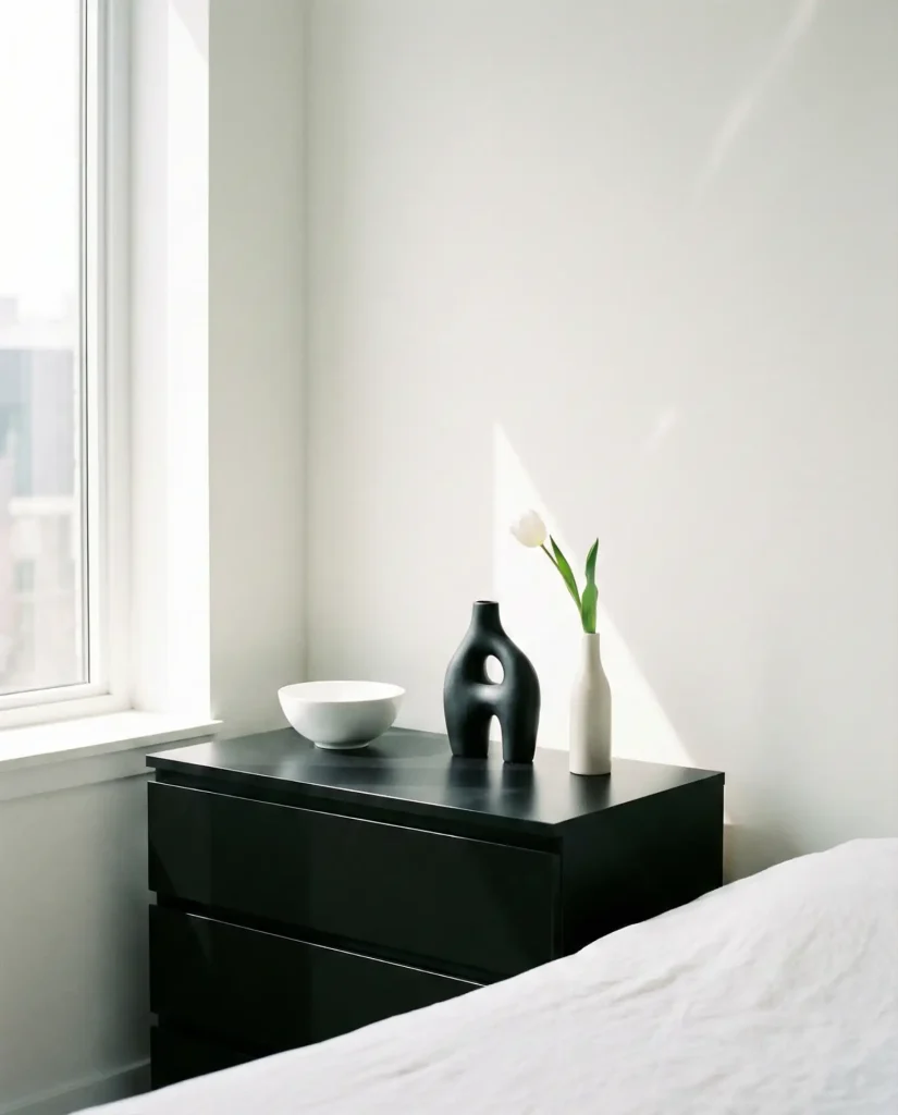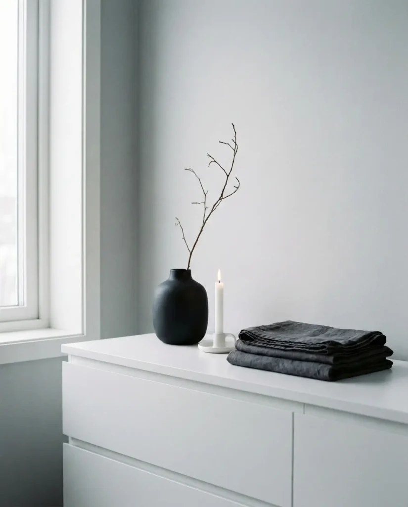 Sticking to a strict white, black, and gray color scheme on your dresser creates a serene, gallery-like moment that feels effortlessly chic and never chaotic, even when you add or subtract items over time. This aesthetic thrives on texture rather than color—think matte ceramics, linen textiles, concrete vessels, and smooth glass. The restraint forces you to be intentional about every object, which paradoxically makes styling faster and more foolproof.