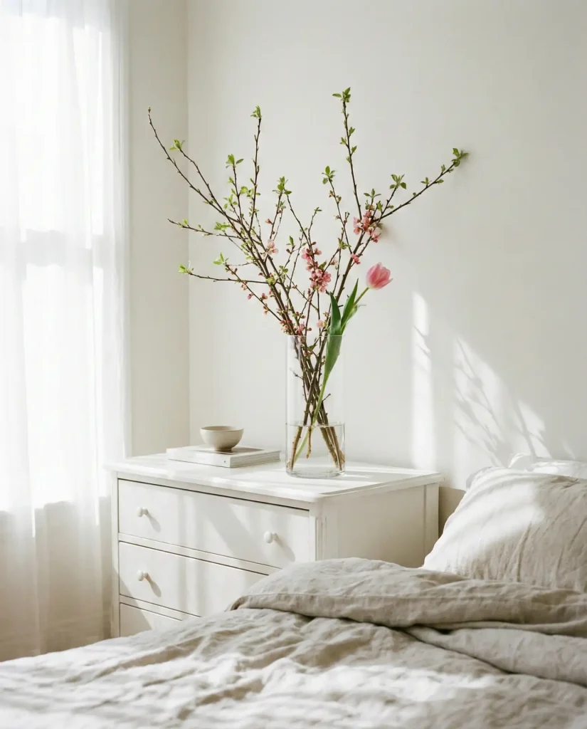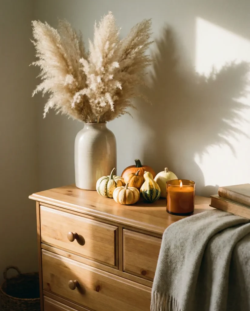 Swapping in branches, dried florals, pinecones, or fresh cuttings keeps your dresser decor feeling fresh and connected to the changing seasons, a practice especially beloved in the Midwest and New England, where four distinct seasons inspire home styling year-round. In spring, cherry blossoms or tulips; in fall, wheat stalks or maple leaves; for Christmas, evergreen sprigs and berries. This approach costs almost nothing and takes minutes to update, yet it makes your space feel intentional and alive.