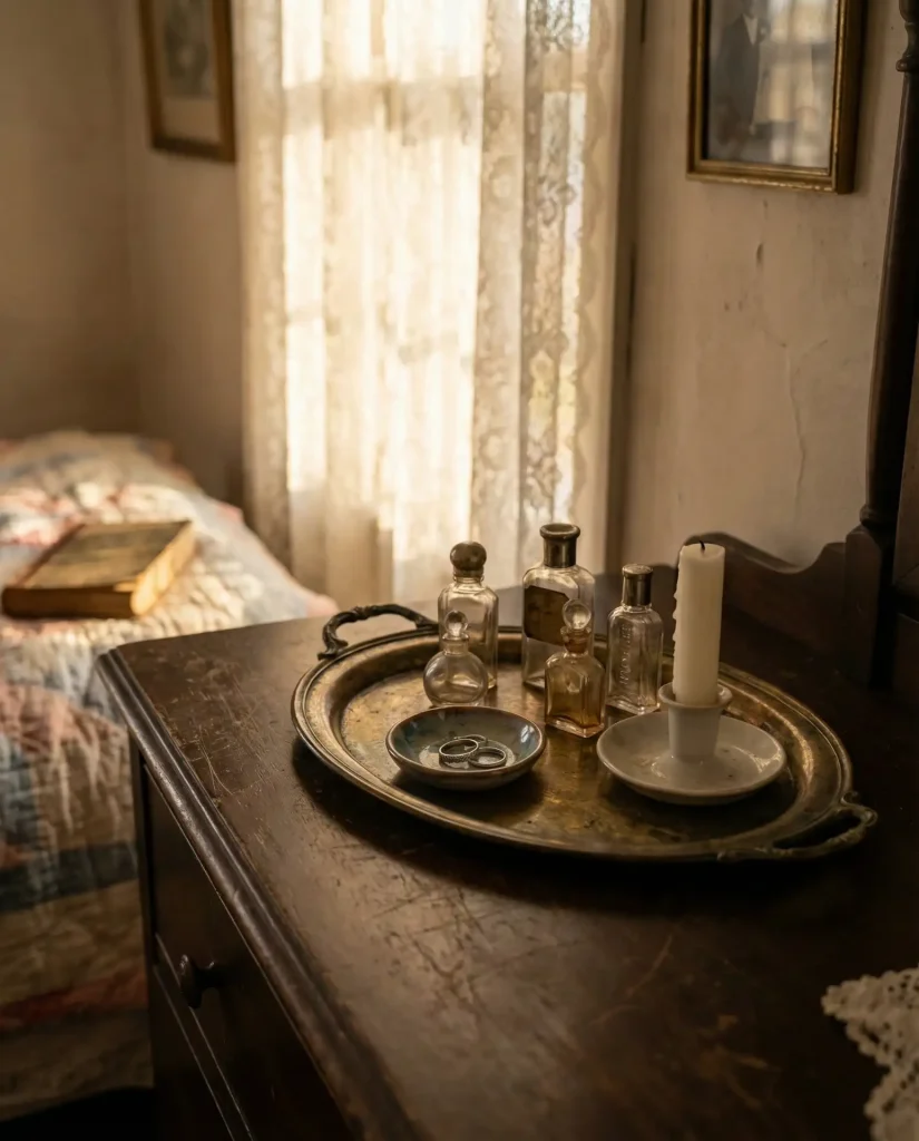 2. Vintage Tray Vignette with Personal Treasures