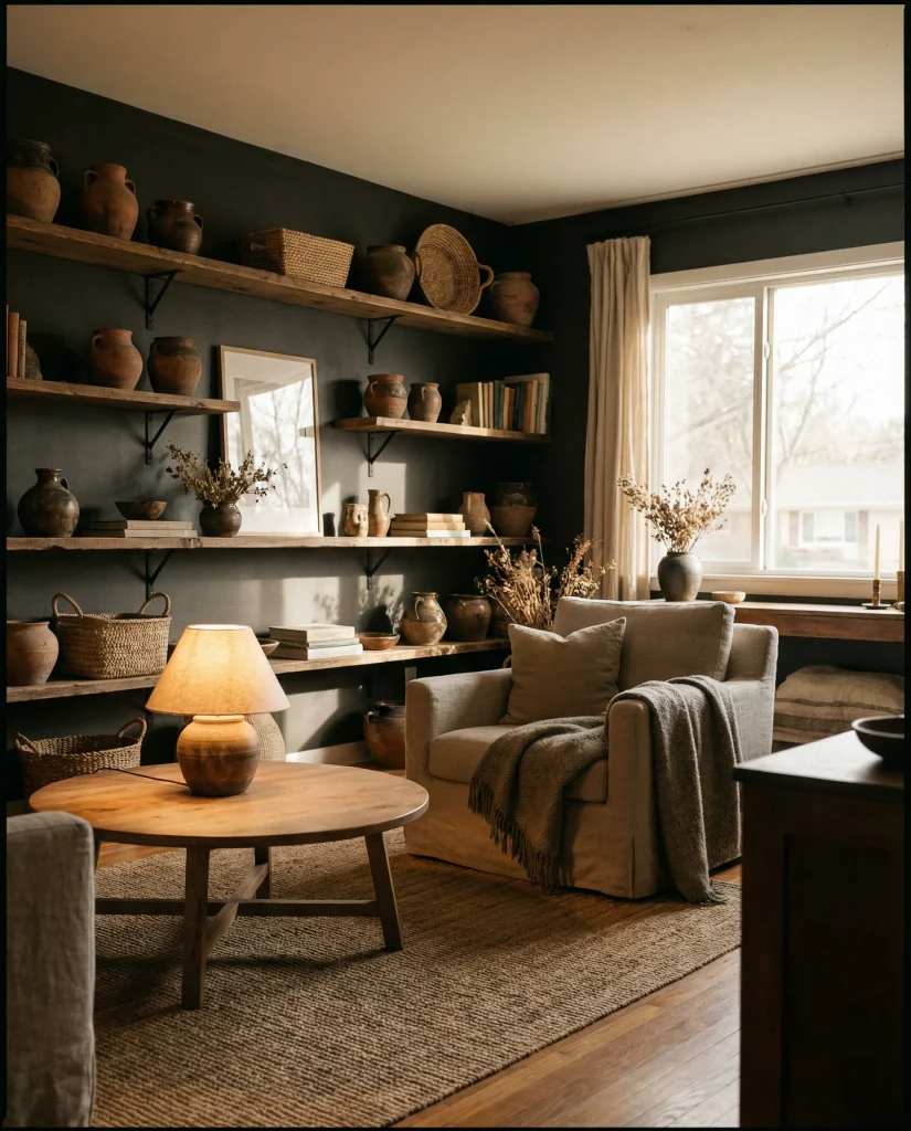 Real homeowner behavior: many people build this style gradually, incorporating market finds, handmade pieces, and meaningful objects that add authenticity.