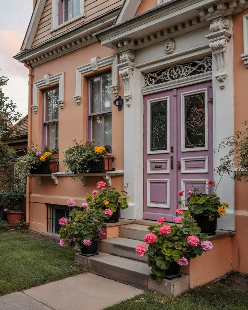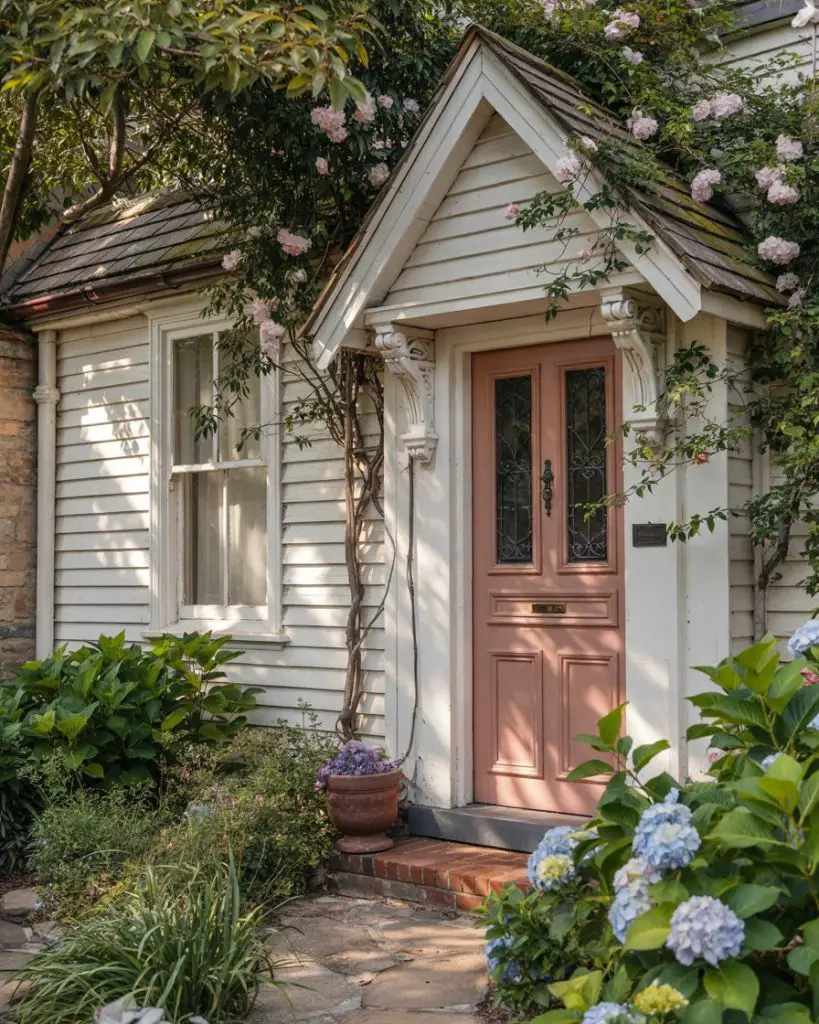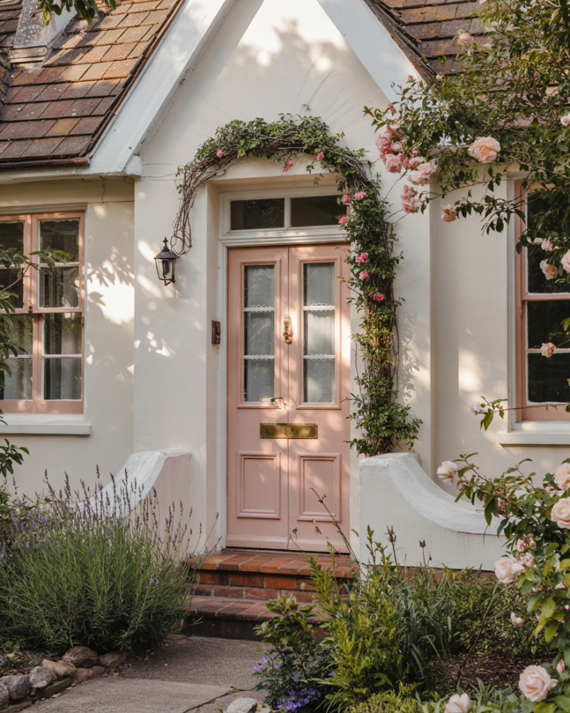 Real homeowner behavior shows that pink door owners tend to be particularly thoughtful about coordinating their entire exterior palette, from shutters to planters to seasonal wreaths. This level of attention creates a cohesive, magazine-worthy look that feels intentional rather than accidental. Budget-wise, pink pairs well with affordable accessories in brass, copper, or natural materials, so you don’t need expensive upgrades to achieve the full effect.