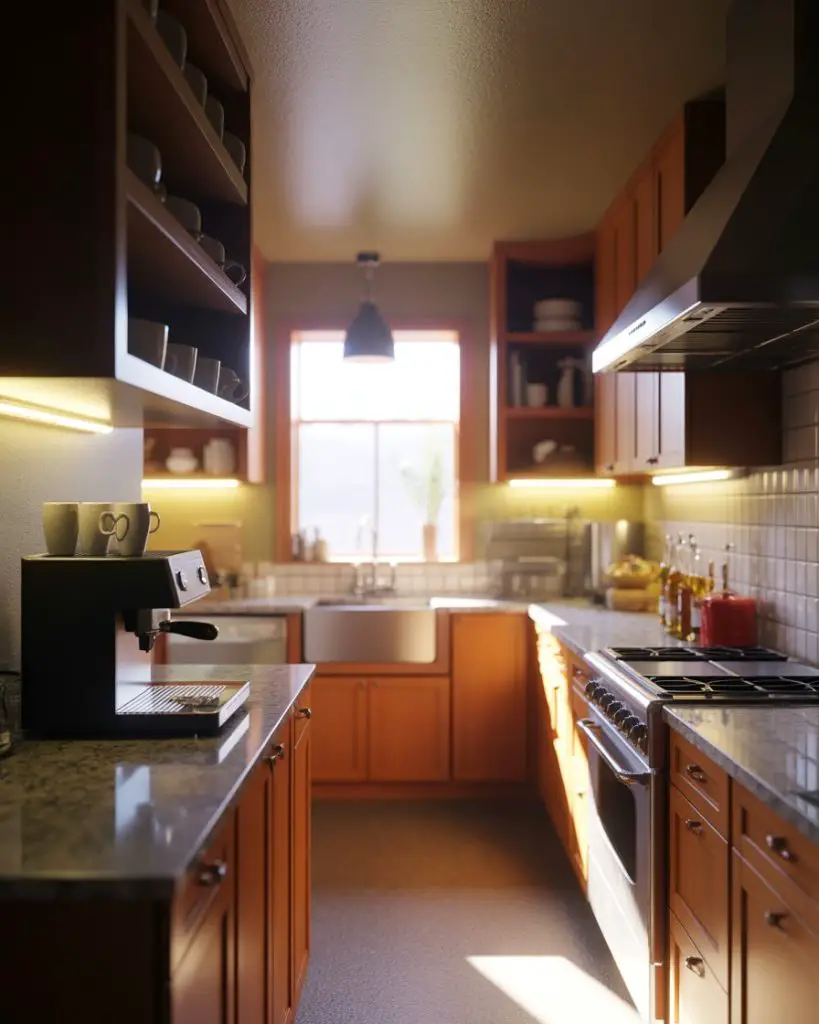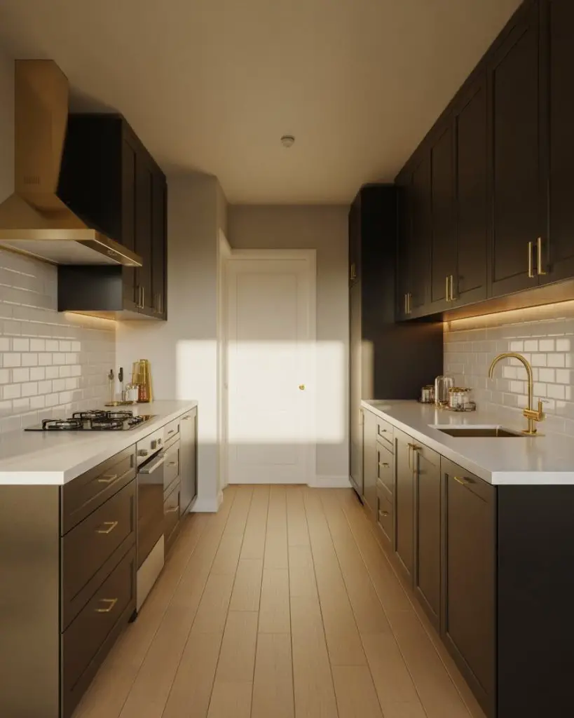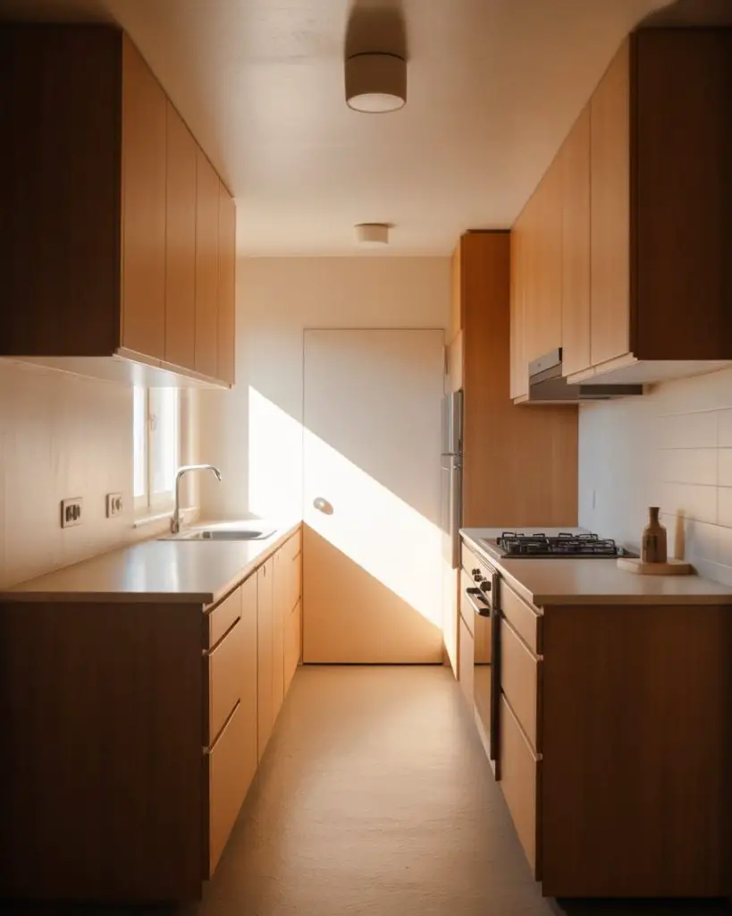 Budget angle: Galley kitchens typically cost 15–25% less to renovate than L-shaped or U-shaped layouts because you’re working with two parallel runs of cabinetry rather than corner configurations that require specialized hardware and waste more material during installation.