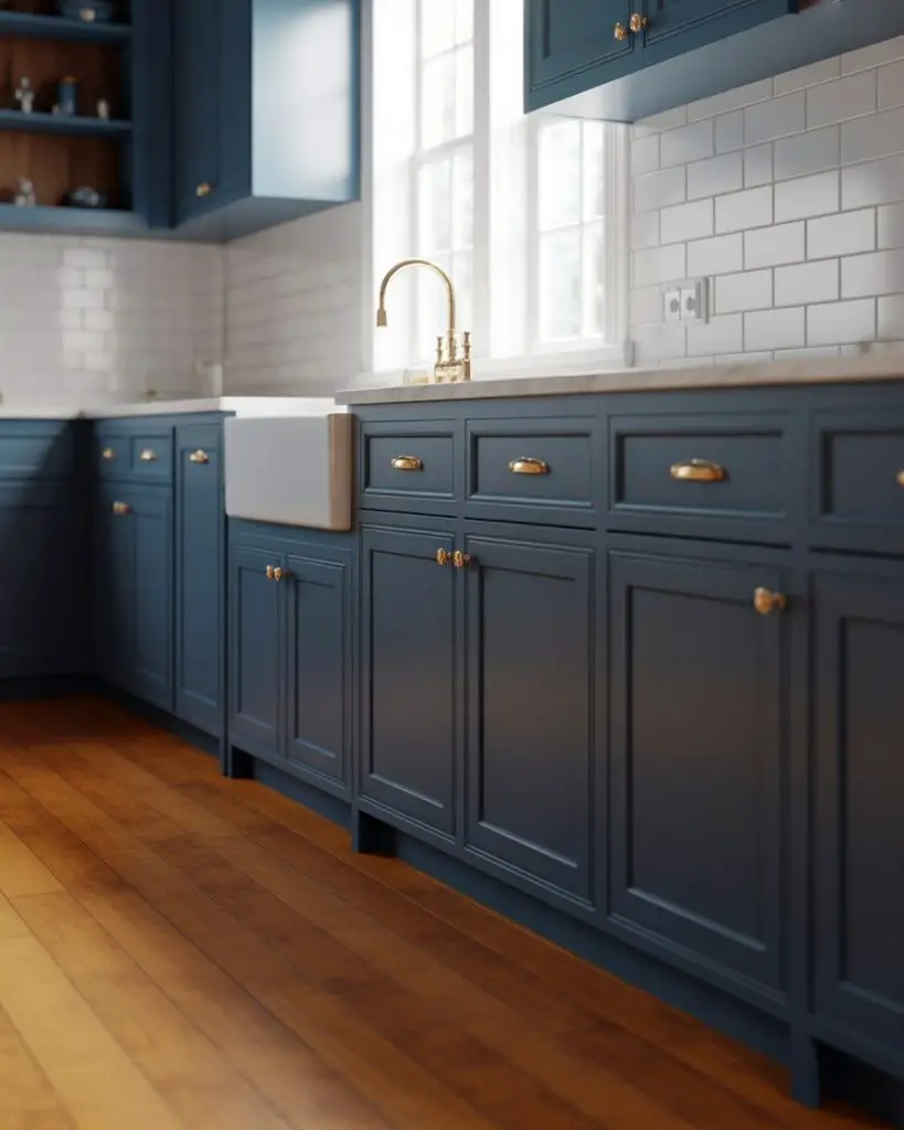 A colleague renovated her Charleston galley with Hale Navy cabinets and said the single best decision was installing dimmable under-cabinet lighting—it lets the blue feel crisp and fresh during daytime cooking but warm and cozy for evening entertaining. The color’s depth changes beautifully with light levels throughout the day.