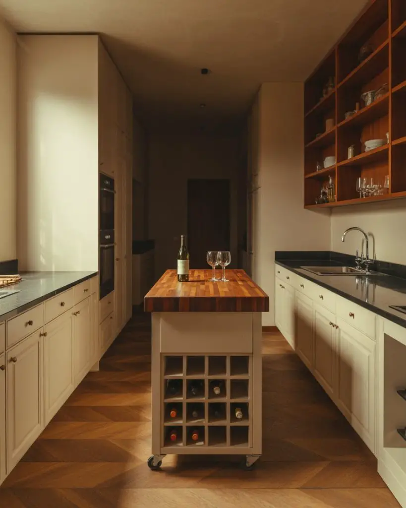 Galley ideas with island functionality center on creating gathering spots that don’t compromise the efficient workflow that makes galleys work. A movable island on casters offers flexibility—roll it into place for party prep, then move it aside for daily cooking. This layout provides the benefits of an island without permanent commitment or the spatial requirements of a fixed installation.