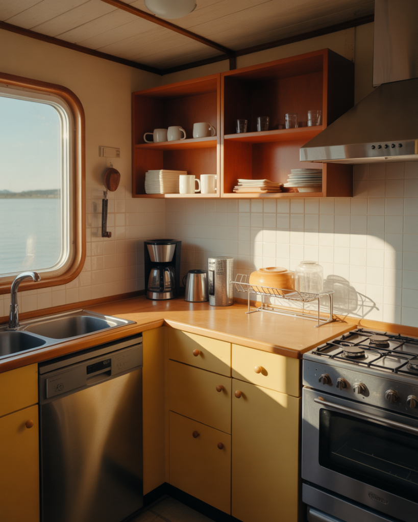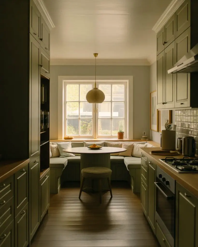 American lifestyle context: The wellness movement has homeowners rethinking kitchens as spaces for mindful food preparation rather than just efficiency. Green tones reduce stress and eye fatigue—especially important in compact galleys where you’re working in close quarters with appliances and task lighting.