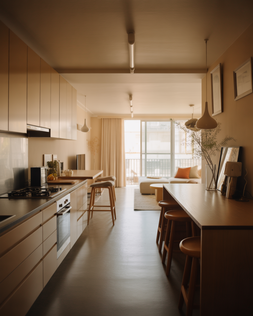 An open galley kitchen removes one wall entirely or replaces it with a low counter, creating seamless flow between cooking and living areas. This layout has become increasingly popular in loft conversions and ranch-style homes where families want to stay connected while preparing meals. The key is maintaining clear sightlines while still defining the kitchen zone through flooring changes or lighting.