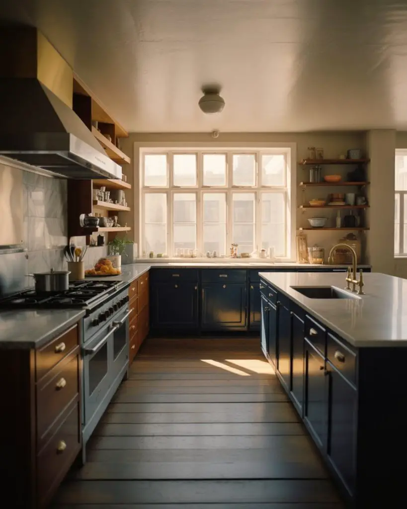 If you’re blessed with a wide galley—typically 8 feet or more between counters—you can incorporate deeper base cabinets and still maintain comfortable traffic flow. This layout eliminates the cramped feeling some associate with galley kitchens while preserving the efficient workflow. The extra width also allows for features like pull-out pantries and appliance garages that smaller galleys can’t accommodate.