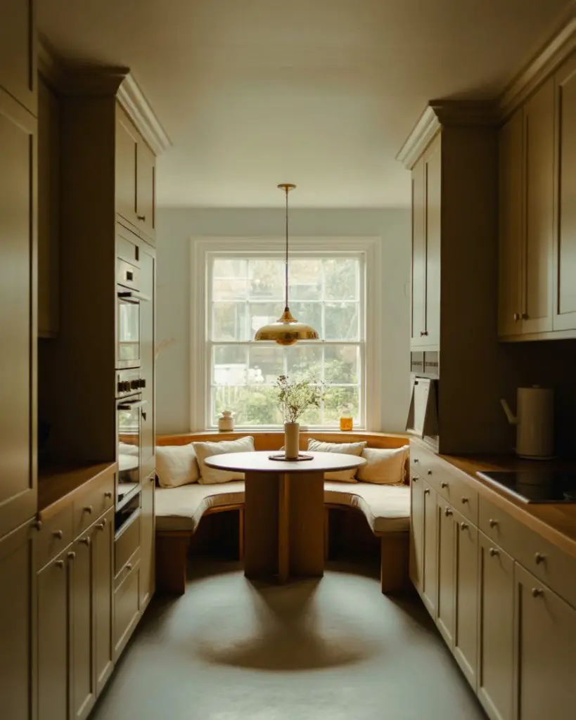 Expert-style commentary: The breakfast nook placement creates what architects call “destination spaces”—areas that draw you through the kitchen to a specific purpose. This psychological element makes the galley feel less like a corridor and more like a purposeful journey from entry to gathering spot.