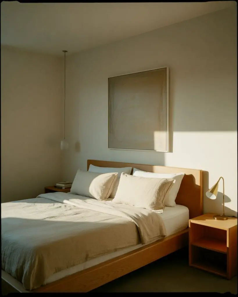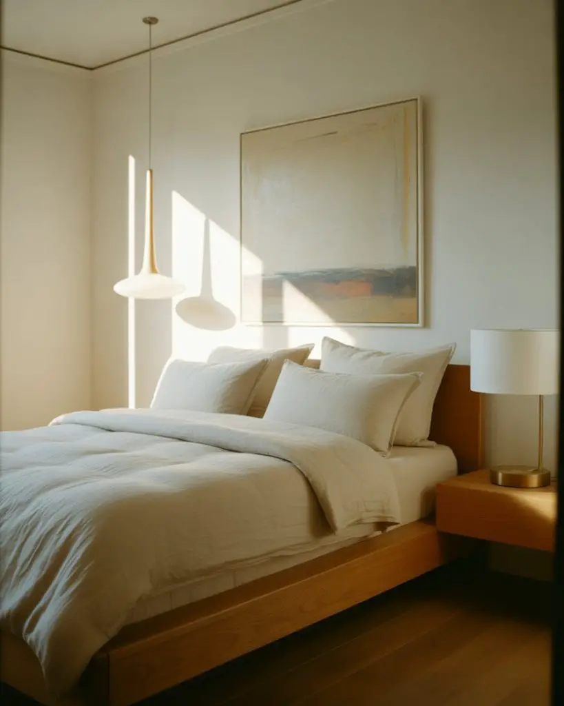 The cozy modern simple approach strips guest bedroom design to its essential elements, then adds warmth through material choices rather than quantity of objects. A quality platform bed, one substantial piece of art, excellent bedding, and strategic lighting create a complete room without excess. This aesthetic has gained serious traction among Americans downsizing or embracing minimalist lifestyles. The simplicity reads as intentional and sophisticated rather than unfinished, particularly when materials—linen, wool, solid wood—showcase visible quality.