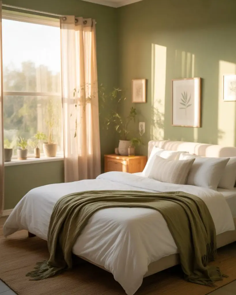 Incorporating green into guest bedrooms taps into biophilic design principles that Americans increasingly value after spending more time at home. Sage walls, olive bedding, or forest green accents all reference nature while remaining sophisticated enough for adult spaces. The color promotes rest and rejuvenation—exactly what you want guests to experience. Green works across design styles: bright emerald for maximalist rooms, soft sage for cozy spaces, deep forest for dramatic moody interiors.