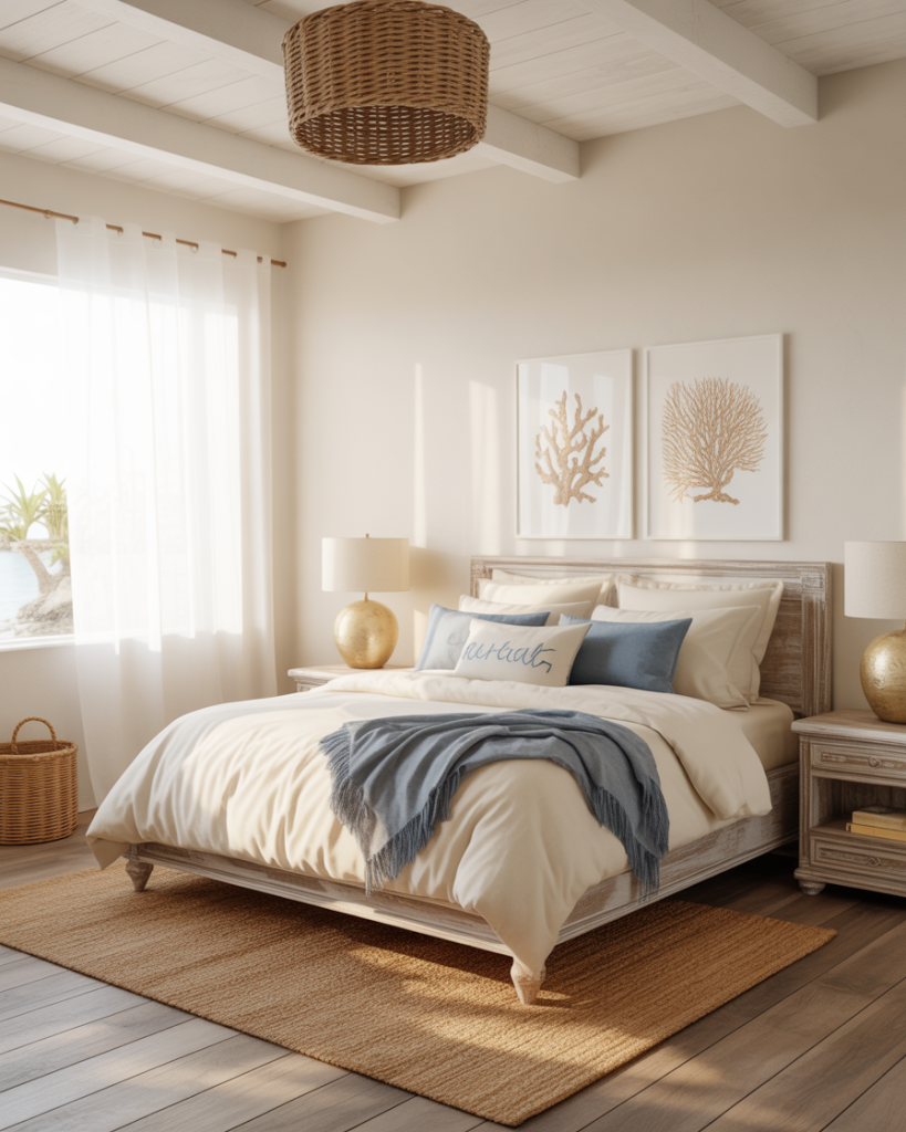 Where this works best: vacation homes (obviously), but also suburban bedrooms where homeowners want a calm retreat aesthetic. The coastal style’s emphasis on natural materials and light colors makes rooms feel larger and more open—valuable in any guest setting. A designer I know suggests limiting your blue to two shades maximum; too many competing blues reads as confused rather than coastal. Add texture through natural materials: seagrass, jute, linen, cotton, and unfinished wood all reinforce the aesthetic without obvious beach symbolism. Real coastal design emphasizes durability and easy maintenance—think slipcovers that wash, rugs that handle sand, and furniture that withstands humidity.