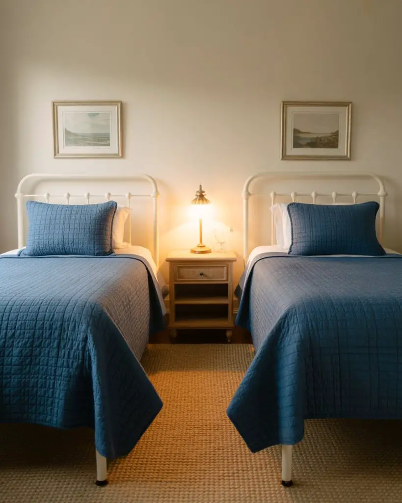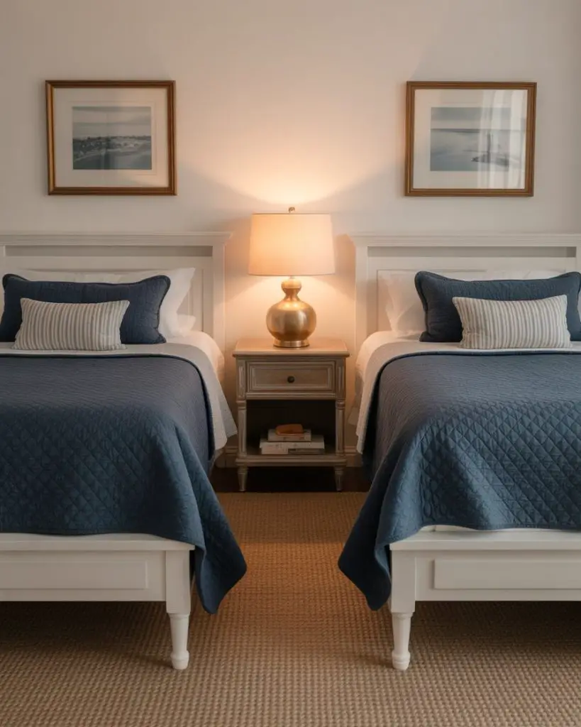 Installing twin beds solves the universal hosting challenge: accommodating friends who don’t share a bed, traveling siblings, or kids visiting grandparents. This layout has surged in popularity as multigenerational travel increases across America. Position the beds parallel with a shared nightstand between them, or angle them in an L-shape for larger rooms. The key is making each bed feel equally important—matching bedding, individual reading lights, and symmetrical styling prevent one side from feeling like an afterthought.